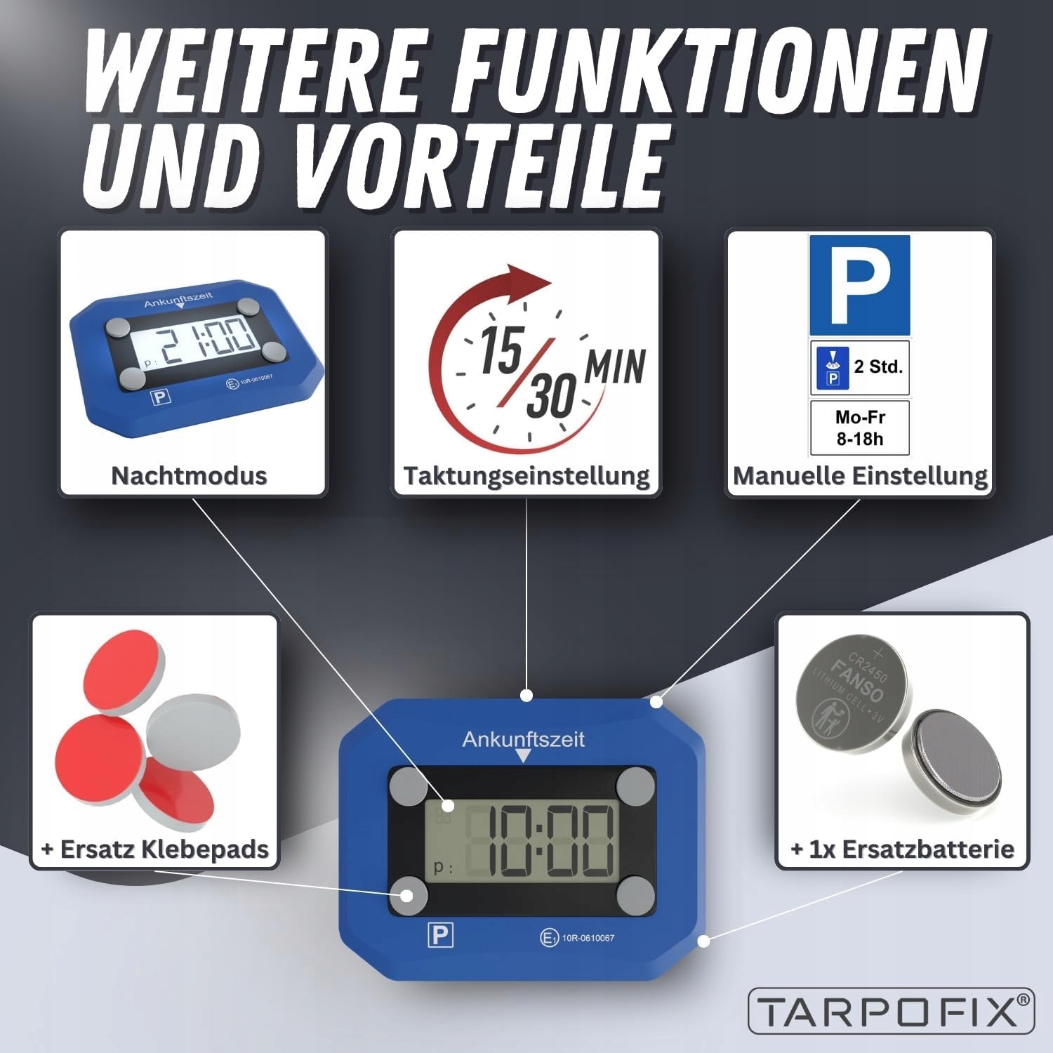 Электрический парковочный диск Tarpofix, одобренный для дорожного движения