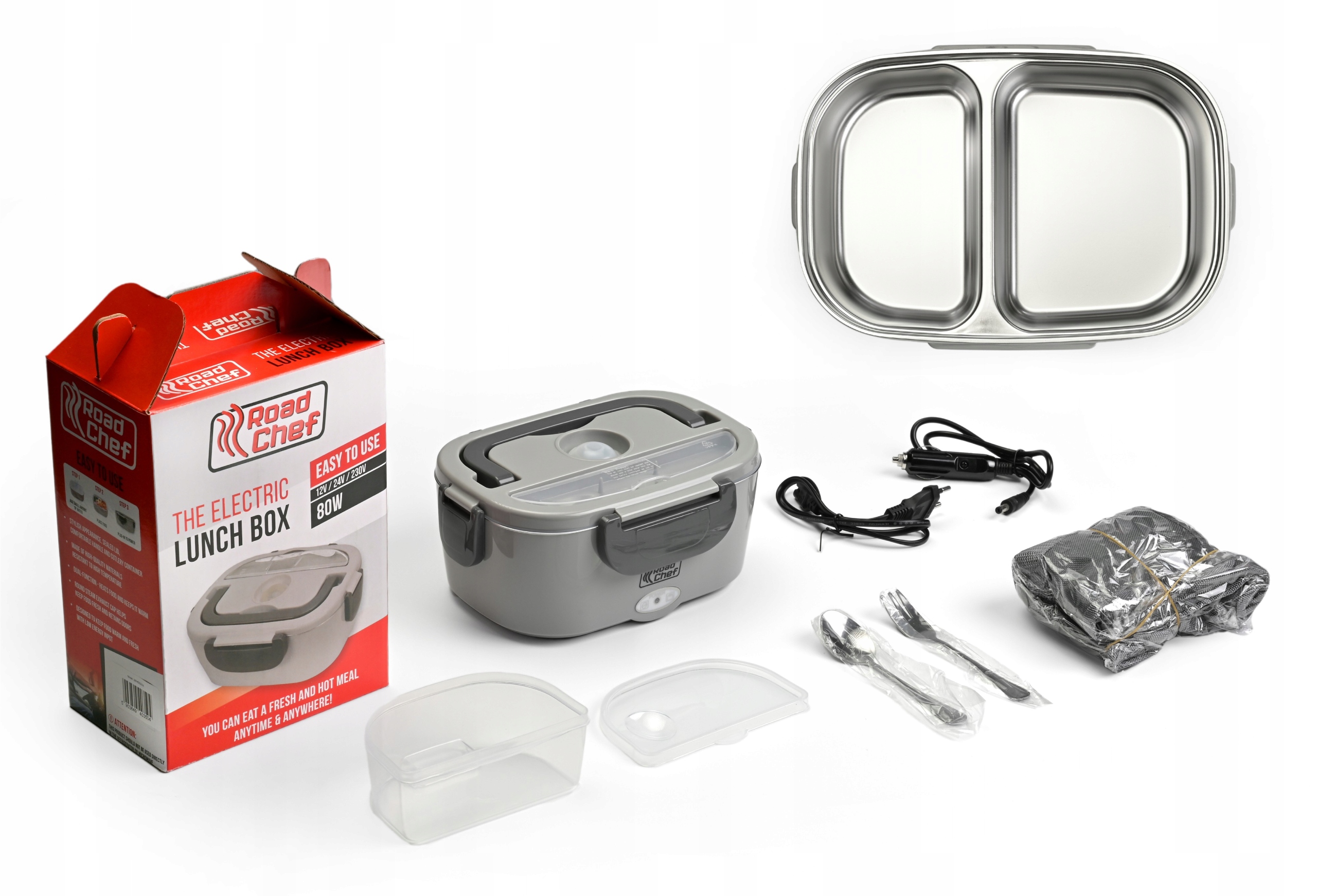 ЕЛЕКТРИЧНИЙ ПІДІГРІВАЧ ОБІДУ ЛАНЧБОКС З РОЗДІЛЬНИМ КАРТРИДЖЕМ 12/24/230V 80W