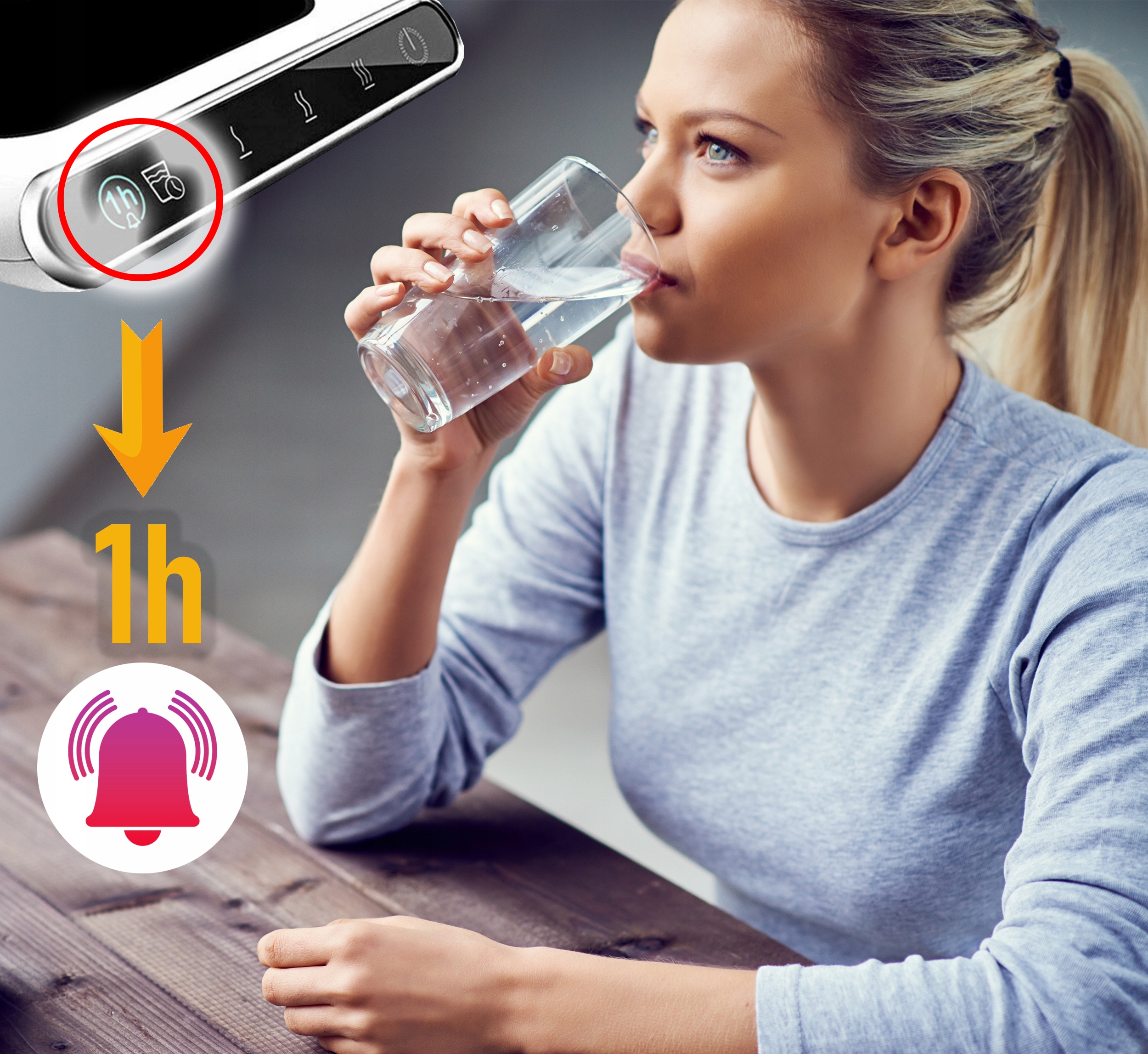Позаботьтесь о своем здоровье с помощью функции напоминания о необходимости питья — устройство каждый час издает нежный звуковой сигнал, напоминающий о необходимости пить воду.