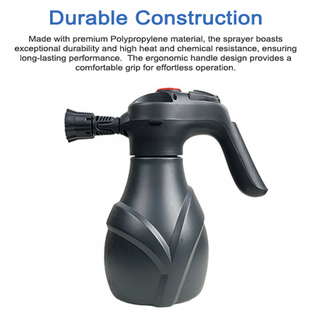1. Высокое давление и простота в эксплуатации: испытайте удобство электрического распылителя пены. Просто нажмите кнопку давления, чтобы образовалась обильная пена, обеспечивающая тщательное эмульгирование и экономию раствора для мойки автомобиля.