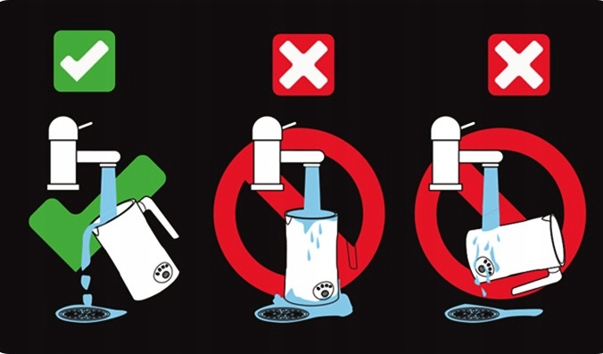 【ЛЕГКАЯ ЧИСТКА БЛАГОДАРЯ ВЫСОКОКАЧЕСТВЕННОМУ ПОКРЫТИЮ】 Вспениватель молока, изготовленный из нержавеющей стали и оснащенный высококачественным антипригарным покрытием, устойчив к царапинам и легко моется. В комплект входит щеточка для чистки, которая упрощает уход. Для протирания внешней поверхности устройства можно использовать влажное полотенце. Не позволяйте воде стекать по бокам рядом с силовой подставкой.