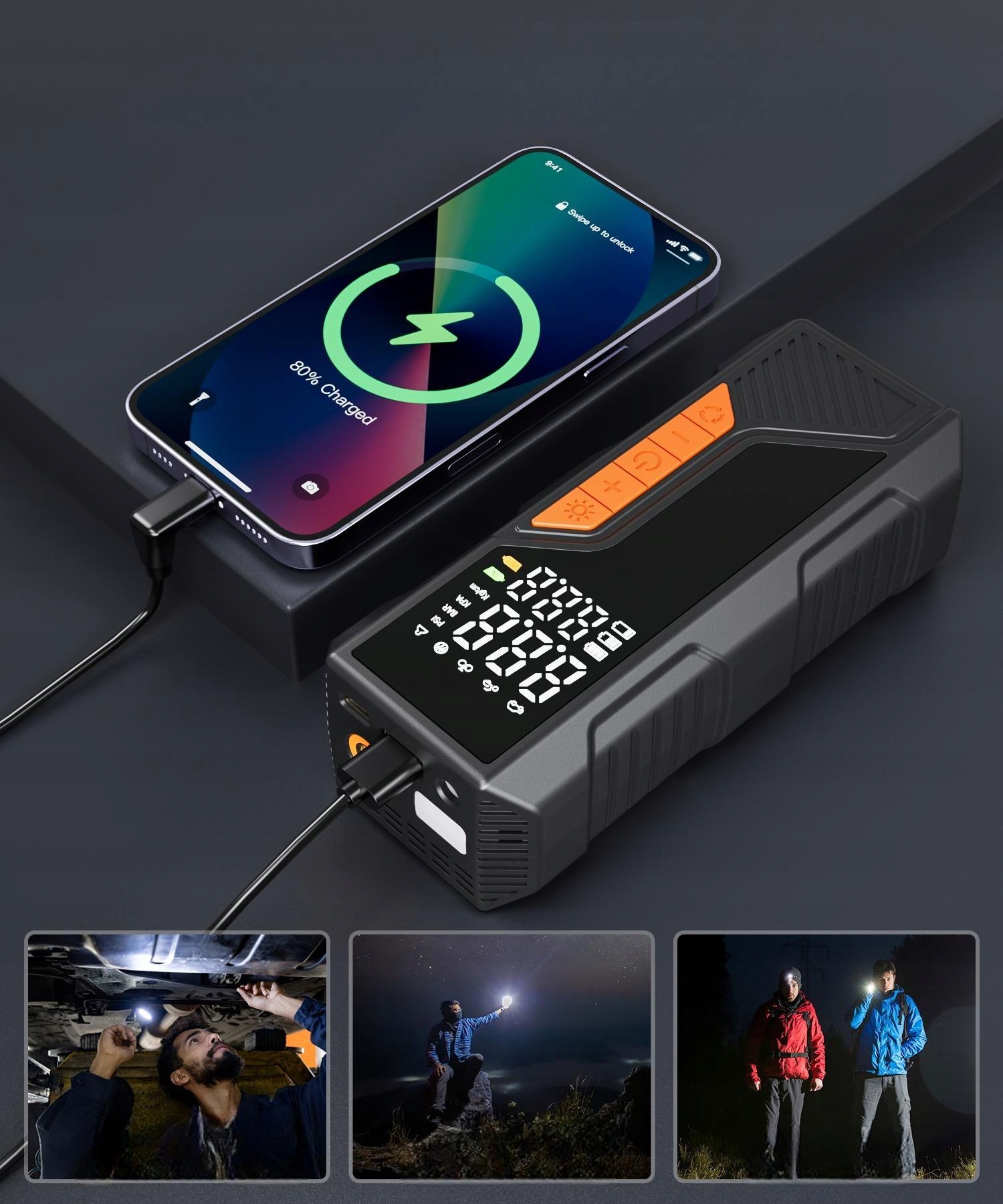 Этот насос — больше, чем просто насос для накачивания шин; имеет встроенный светодиод для подсветки в темное время суток и мигающий аварийный режим, сигнализирующий о необходимости помощи. Идеально подходит для ночных поломок, походов или дорожных чрезвычайных ситуаций, что делает его незаменимым спутником в путешествии или в чрезвычайных ситуациях.