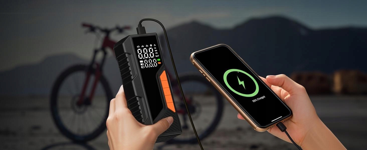 Этот беспроводной воздушный компрессор предлагает четыре предустановленных режима накачивания для велосипедов, мотоциклов, автомобилей и футбольных видов спорта. Пятый настраиваемый режим позволяет вам устанавливать давление в зависимости от объекта, который вы надуваете, в соответствии с вашими различными потребностями.