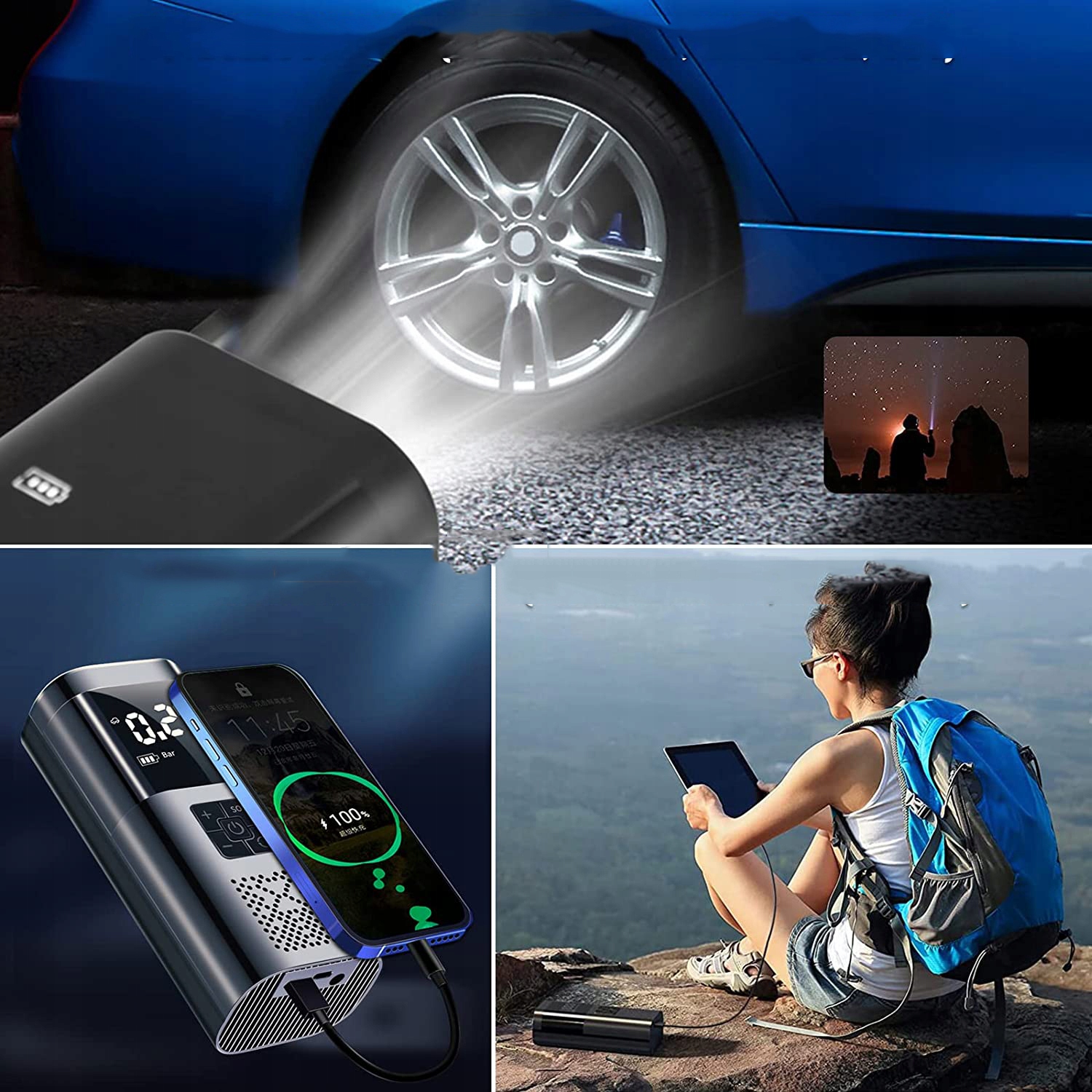 - Так что мини -велосипедный насос может быть использован не только для накачки, также может использоваться в качестве мощного банка для зарядки и другого мобильного телефона,