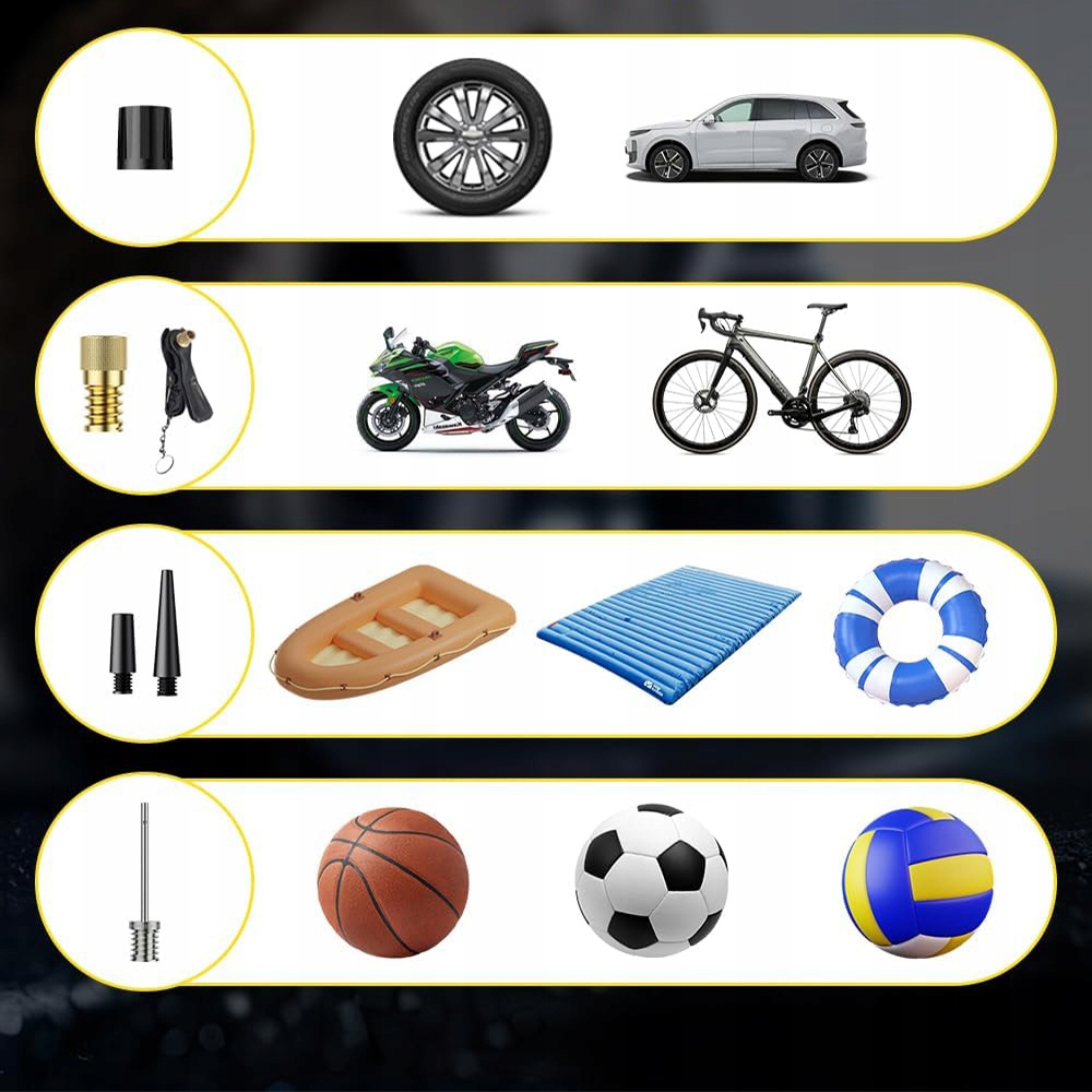 Электрический велосипедный насос с компактным размером и простой конструкцией, которая легко вписывается в мешки, велосипедные стволы, рюкзаки и автомобили , специально разработанный для путешествий. Кроме того, электрический насос оснащен батареей 6000 мАч, поэтому вам не нужно беспокоиться о том, что батарея будет исходить при перекачке шин