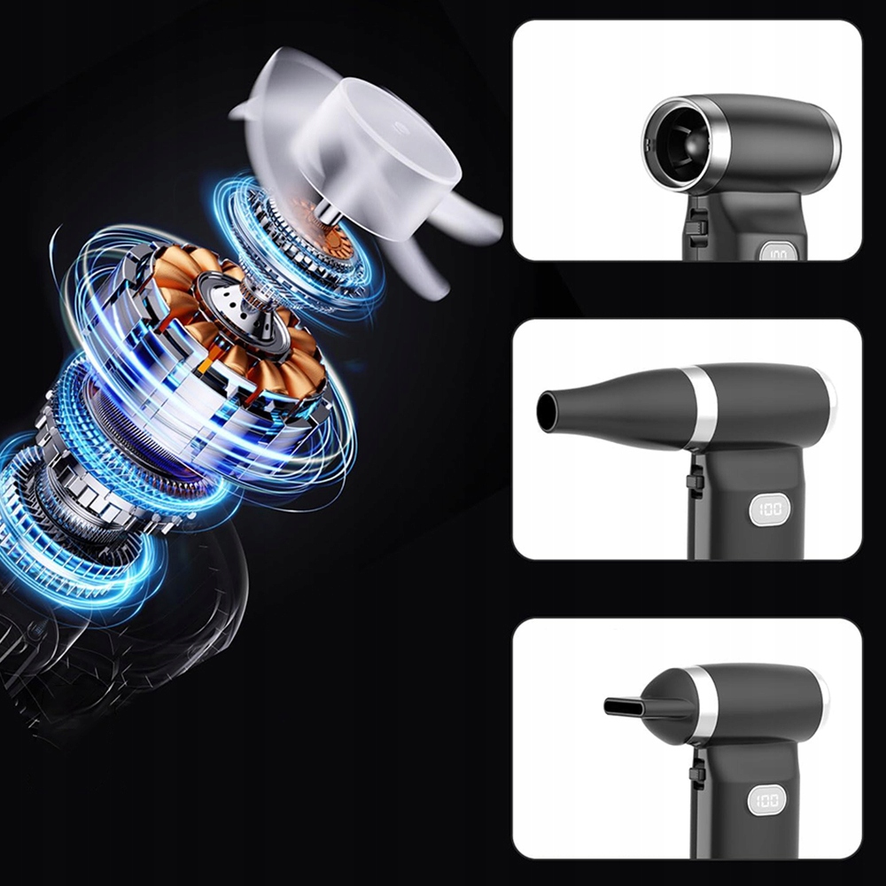 его можно использовать в качестве электрического воздуходувки для очистки компьютеров, клавиатур, интерьеров автомобилей, диванов, диванов, игрушек, кондиционеров и электронного оборудования, насыщенных подушек безопасности и т. Д.