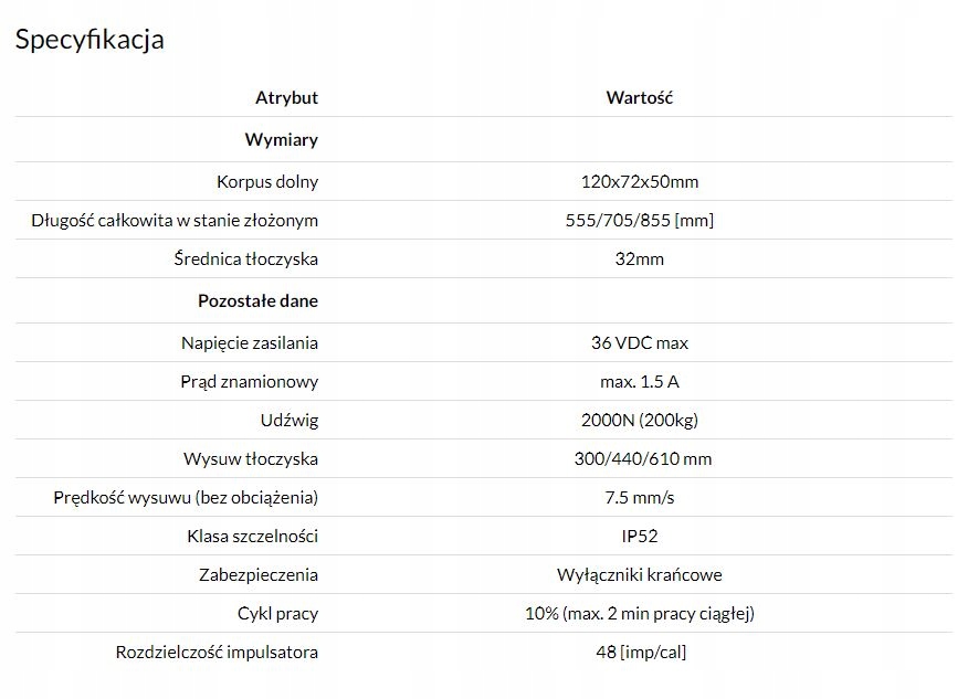 Изделие часто используется в сельскохозяйственных машинах и устройствах, которые должны соответствовать соответствующим стандартам. Он прост в установке и использовании. Он имеет внутренние концевые выключатели безопасности. Изменение направления движения предполагает изменение полярности (полярности) — его приводит в действие двигатель постоянного тока (двигатель постоянного тока).