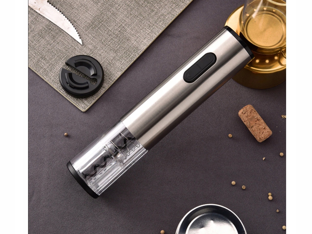 Штопор с электроприводом для этого потребуется 4 батарейки типа АА. Изготовлен из высококачественных материалов и имеет стильный и элегантный дизайн. Очень красиво и элегантно смотрится на кухонном столе или столешнице.