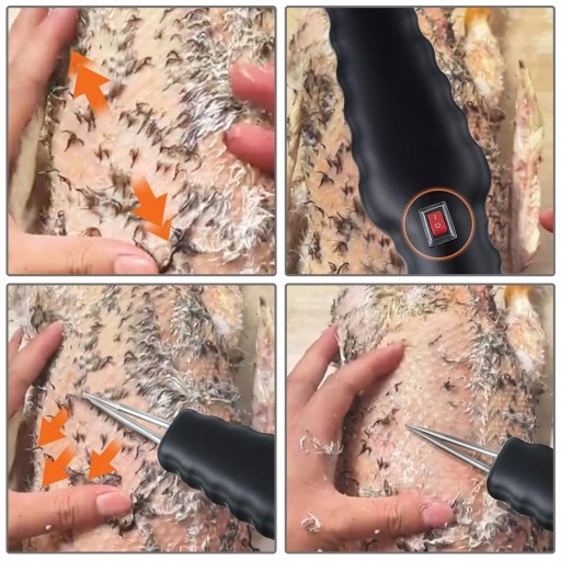🐓【Мощный двигатель】: В устройстве для удаления волос используется мощный двигатель, который не замыкается даже после длительного использования. Щипец не прилипает к мясу птицы, обеспечивая целостность тела птицы. Он очень подходит для кур, уток, гусей и индеек.