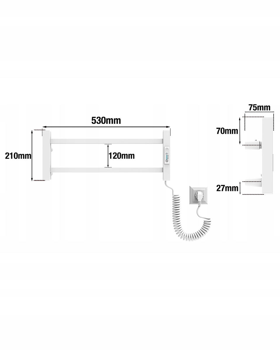 Электрическая ванная комната мини -сушилка Lux 2 White - это с сухим кабелем в середине и не нуждается в дополнительных жидкостях, стоит только подключить его к электричеству, и это работает!