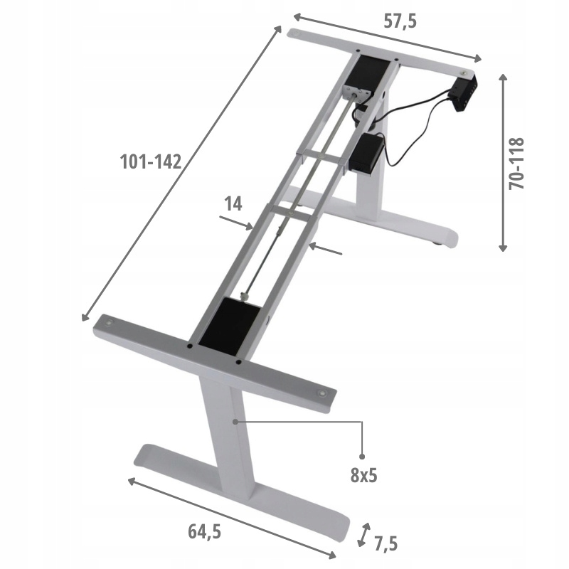 Регулировка высоты электричества в диапазоне 70-118 см, выполненная с использованием одного двигателя