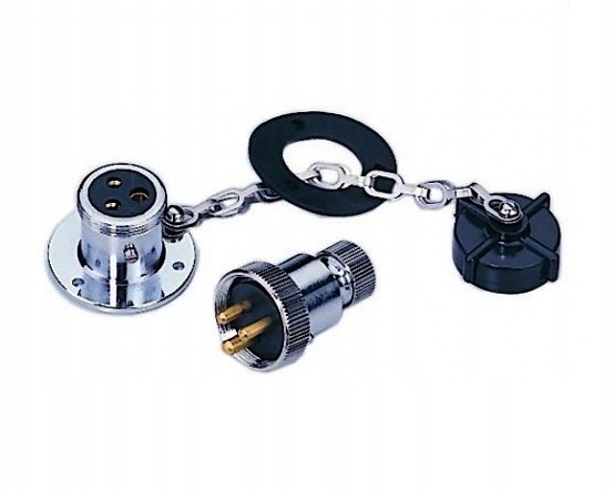 БРЫЗГОЗАЩИТНЫЙ ЭЛЕКТРИЧЕСКИЙ РАЗЪЕМ ДЛЯ ЯХТЫ ИЗ ХРОМИРОВАННОЙ ЛАТУНИ, ВКЛЮЧАЯ РОЗЕТКУ, ВИЛКУ И ИЗОЛЯЦИОННУЮ ВИЛКУ, РАЗЪЕМ ДЛЯ 2 КАБЕЛЕЙ