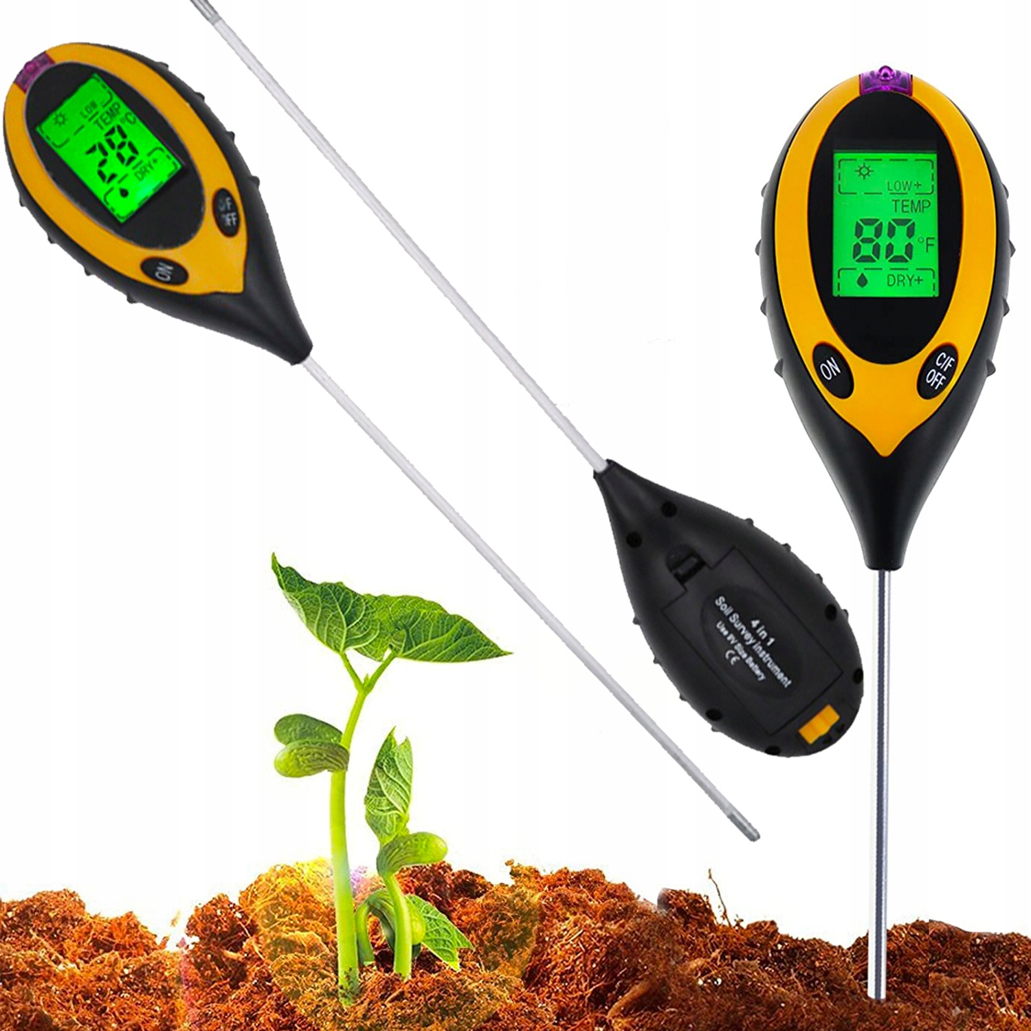 - Кислотомер 4 в 1 с функциями измерения влажности почвы, температуры и солнечного света