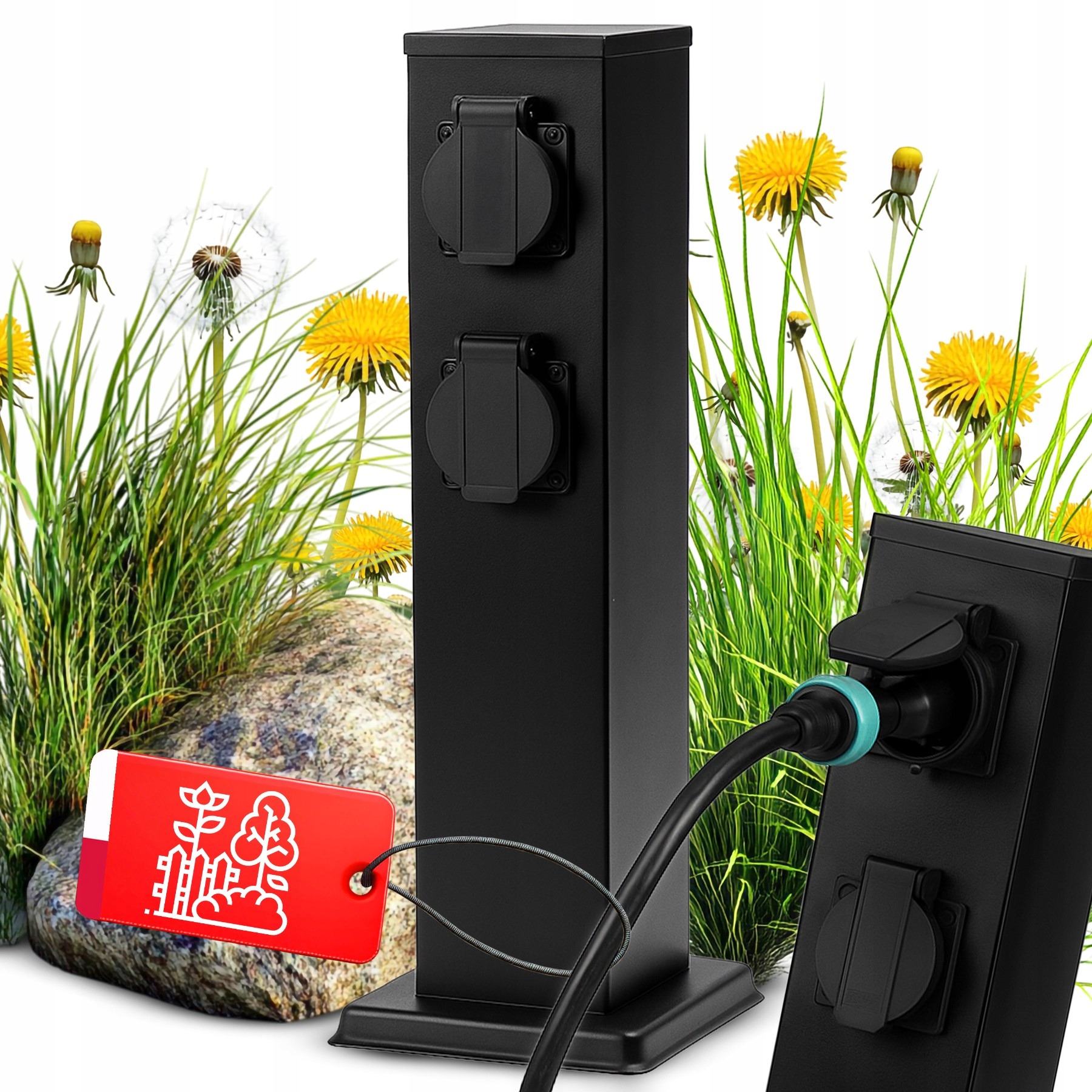 ЕЛЕКТРИЧНИЙ САДОВИЙ СТОВП ГЕРМЕТИЧНИЙ 4X РОЗЕТКИ IP44 230V ЧОРНИЙ ПРЕМІУМ