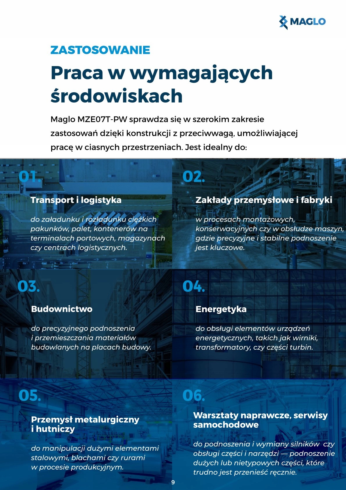 Представляем электрический кран Maglo MZE07T PW — идеальный инструмент для сборки, перемещения и перемещения элементов в цехах, на складах и во дворах. конструкция.