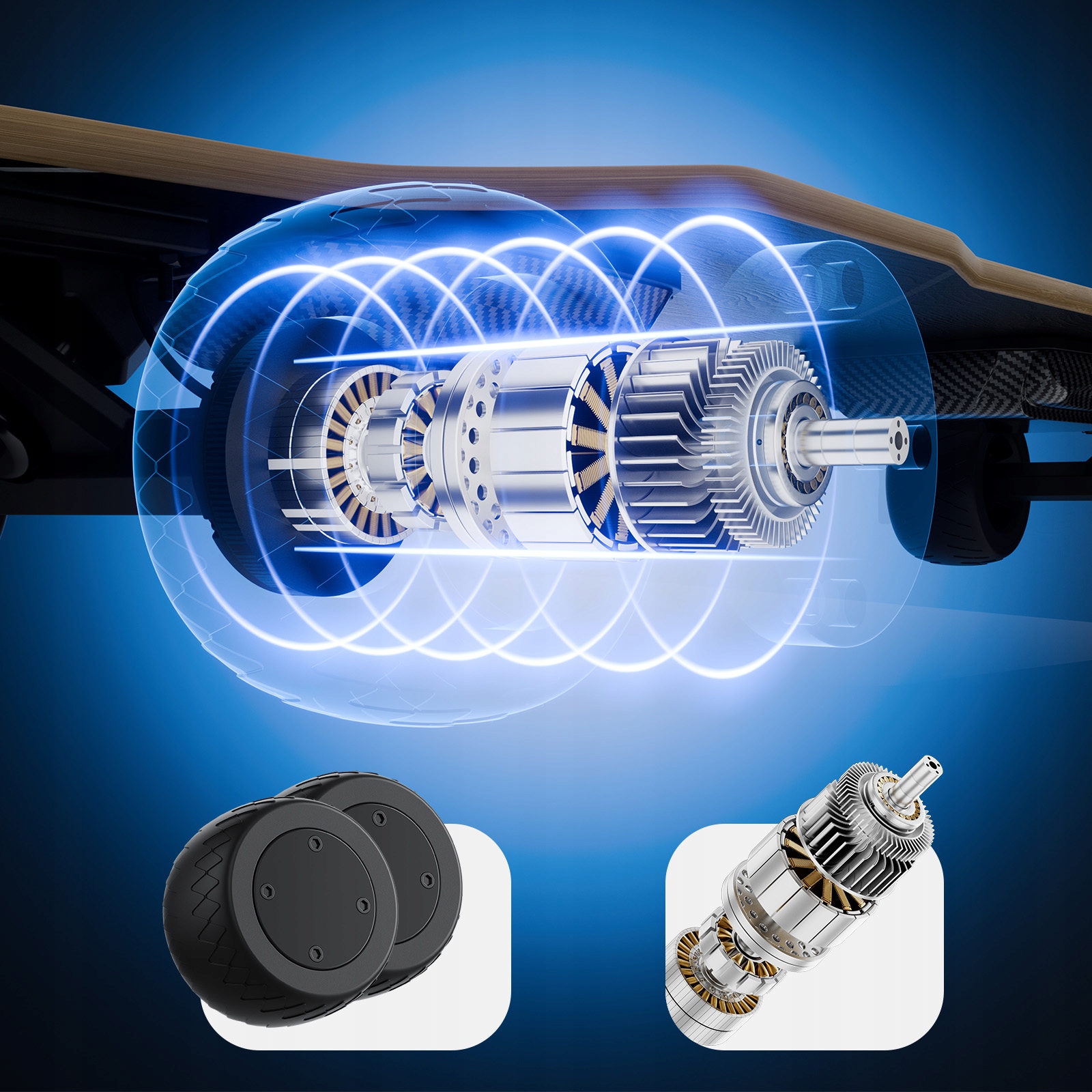 Колеса Cloudweels 105 мм обеспечивают отличную адгезию на асфальте, гравии или влажных поверхностях. Водонепроницаемая степень ipx4 защищает от брызги, а v0 пожарный корпус обеспечивает максимальную безопасность. 8-слойная кленовая колода (93 x 28,5 см) выдерживает нагрузку до 130 кг , поддерживая стабильность и сопротивление трещинах.