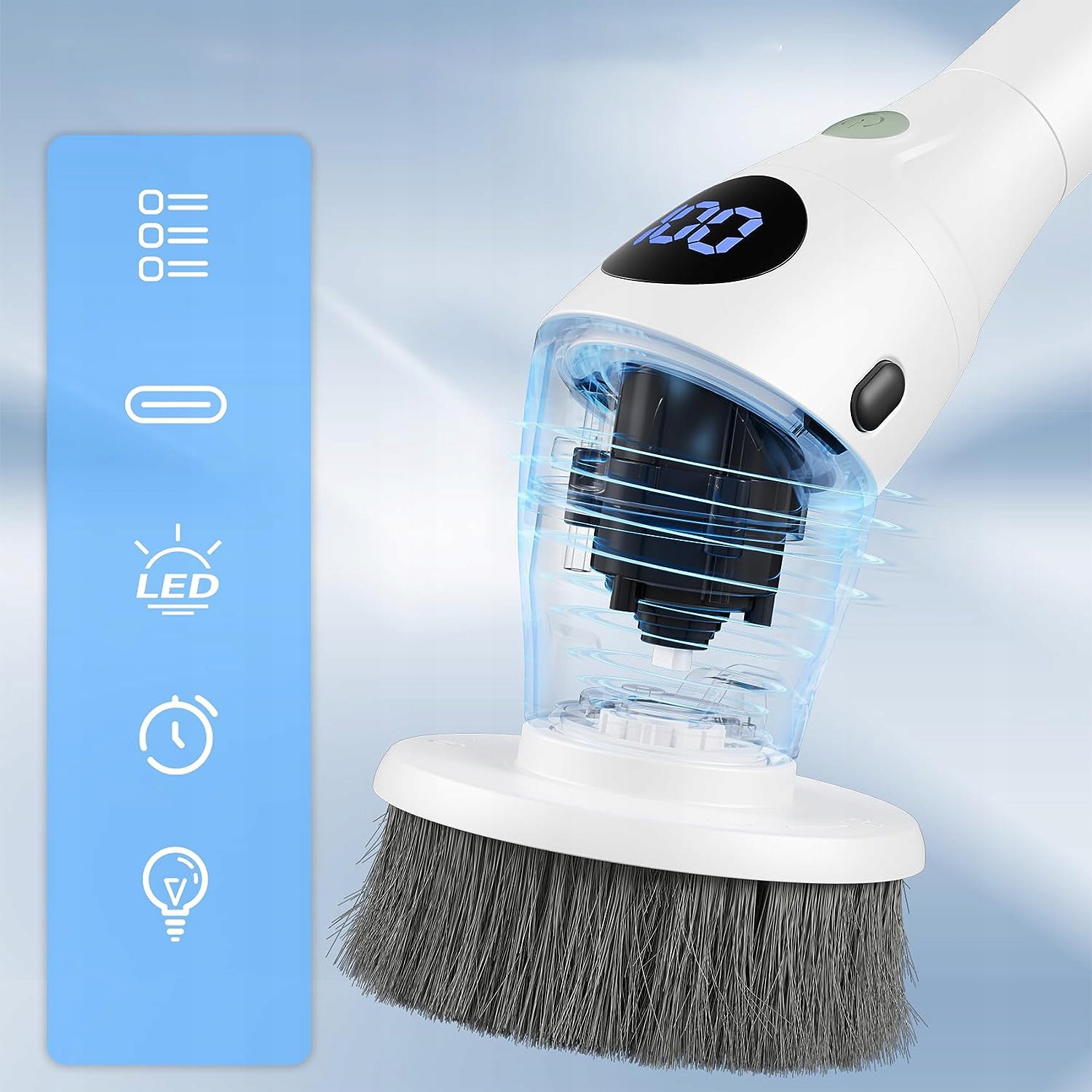 - Особенности электрической щетки для чистки душа светодиодный дисплей, порт USB C для зарядки и функция быстрой зарядки, обеспечивающая около 90 минут использования всего за 3,5 часа.