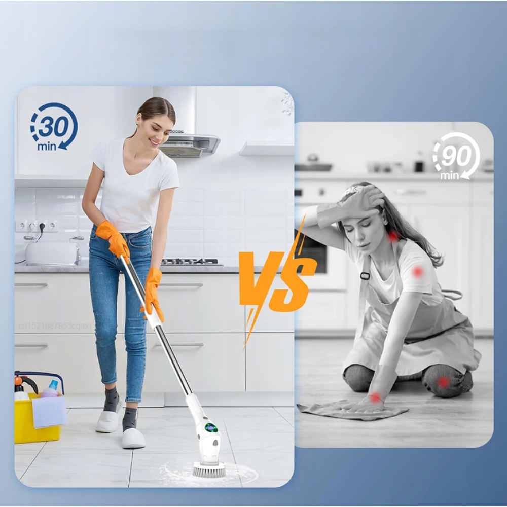 - Эффективная водонепроницаемая функция, беспроводная регулировка, оснащенная поворотной головкой на 180° с длинным удлинителем , благодаря чему очистка с помощью электрической ротационной поломоечной машины становится проще и удобнее. Больше не нужно наклоняться или становиться на колени во время уборки.