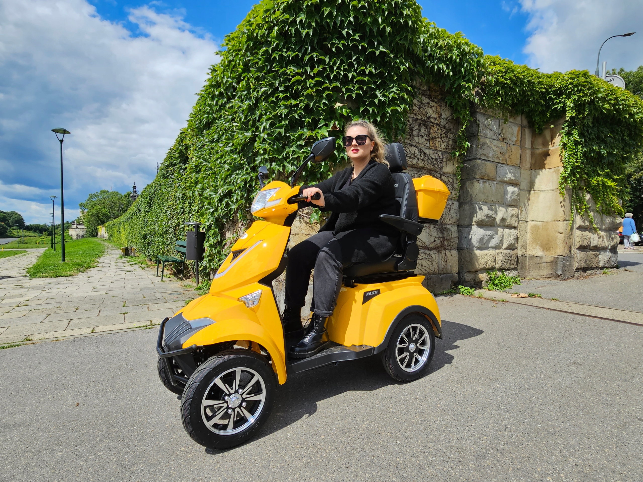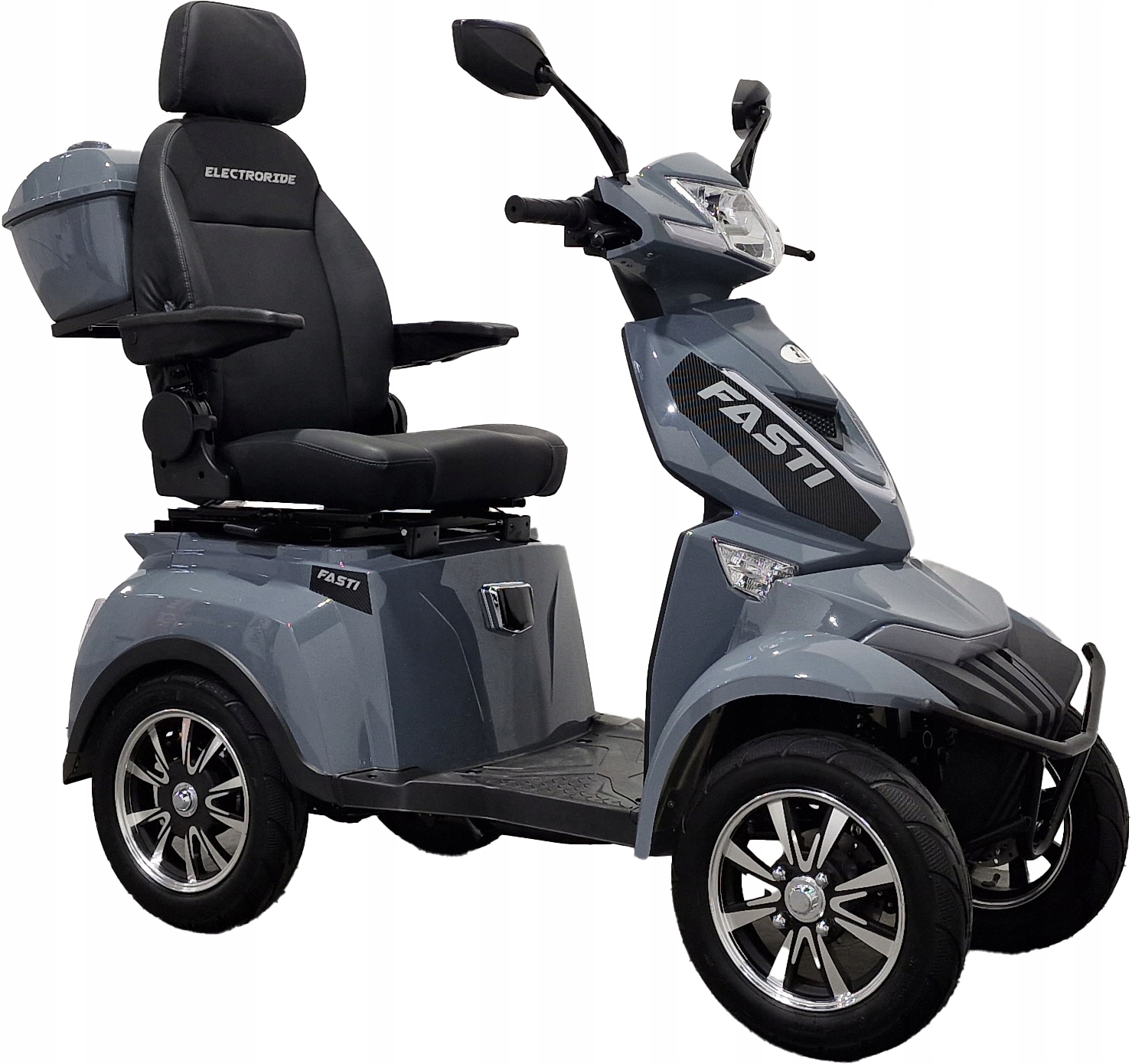 FASTI 4 MAX имеет больше оборудования, чем базовая версия – удобное сиденье с высокой регулируемой спинкой, регулируемые подлокотники и литий-ионный аккумулятор. Его можно снять и зарядить вне автомобиля. FASTI 4 MAX — новый, самый комфортабельный, облегчающий передвижение бескомплектный автомобиль марки ELECTRORIDE. Он имеет медицинскую справку, которая освобождает вас от необходимости регистрации и наличия водительских прав, а также позволяет обращаться с моделью FASTI 4 MAX как с пешеходом в дорожном движении. Это дает возможность передвигаться по тротуару, заходить в парк или даже в торговый центр!