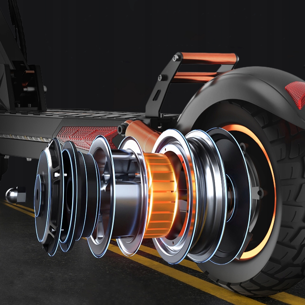 Обработка звуковой частоты двигателя обеспечивает мощность, способность выдерживать до 10-20 градусов. Скорость 45 км/ч. Это электрический самокат для взрослых, подходящий для ежедневных поездок на работу и бездорожья.