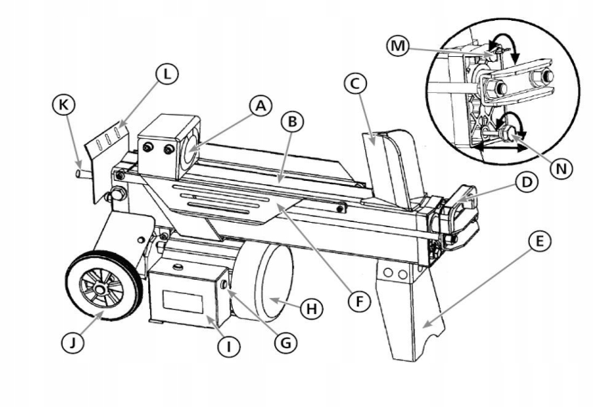 Электрический горизонтальный сплиттер с потребляемой мощностью 2200Вт. Длина древесины до 52 см. Диаметр древесины до 25 см. Гидравлика в сочетании с мощностью двигателя обеспечивают максимальное давление 5 тонн.