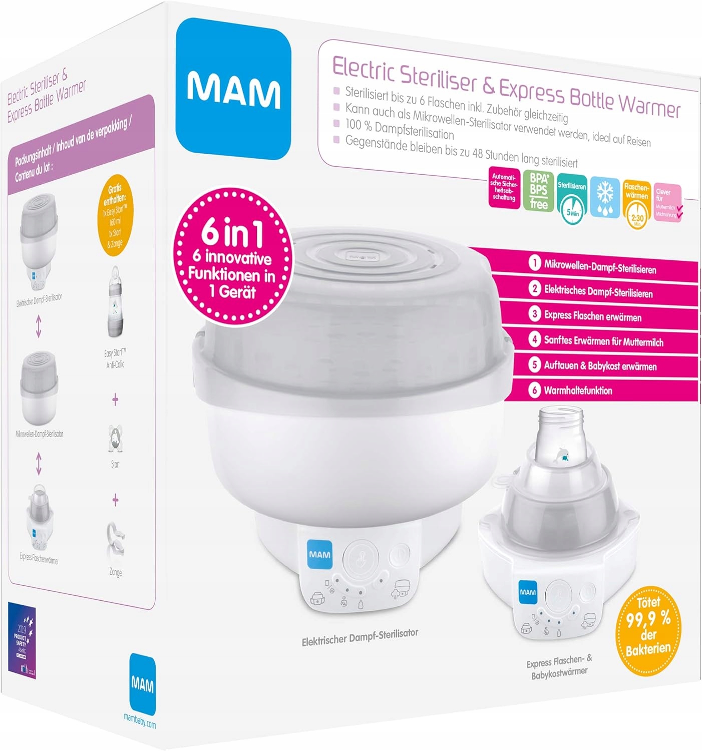 ЭЛЕКТРИЧЕСКИЙ СТЕРИЛИЗАТОР-НАГРЕВАТЕЛЬ ДЛЯ БУТЫЛОК 6 В 1 MAM