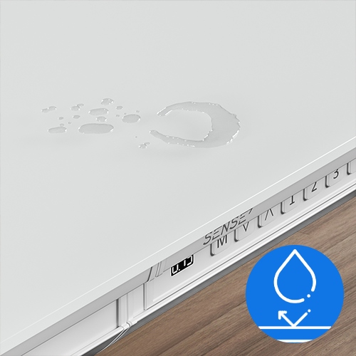 Столешница отделана закаленным стеклом, которое не только выглядит фантастически и его легко содержать в чистоте, но и защитит вас от любых несчастных случаев, связанных с напитками, хранящимися на столе. Даже если вы что-то прольете, риска разбухания плиты нет.