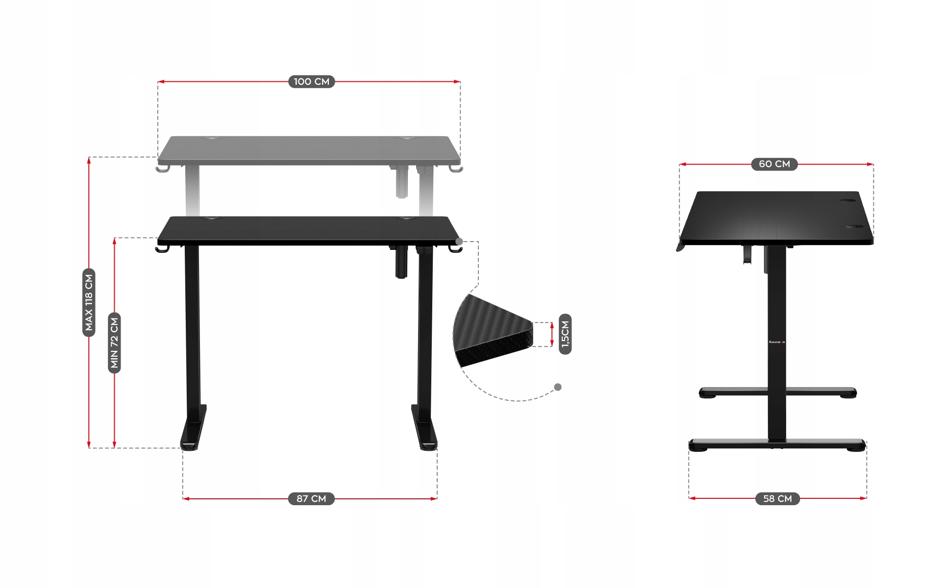Электрический и эргономичный стол Благодаря возможности снижения и поднятия столешницы, вы можете занять комфортное положение в любое время. Регулировка высоты стола в диапазоне от 72 до 118 см позволяет вам работать, стоя и сидеть.