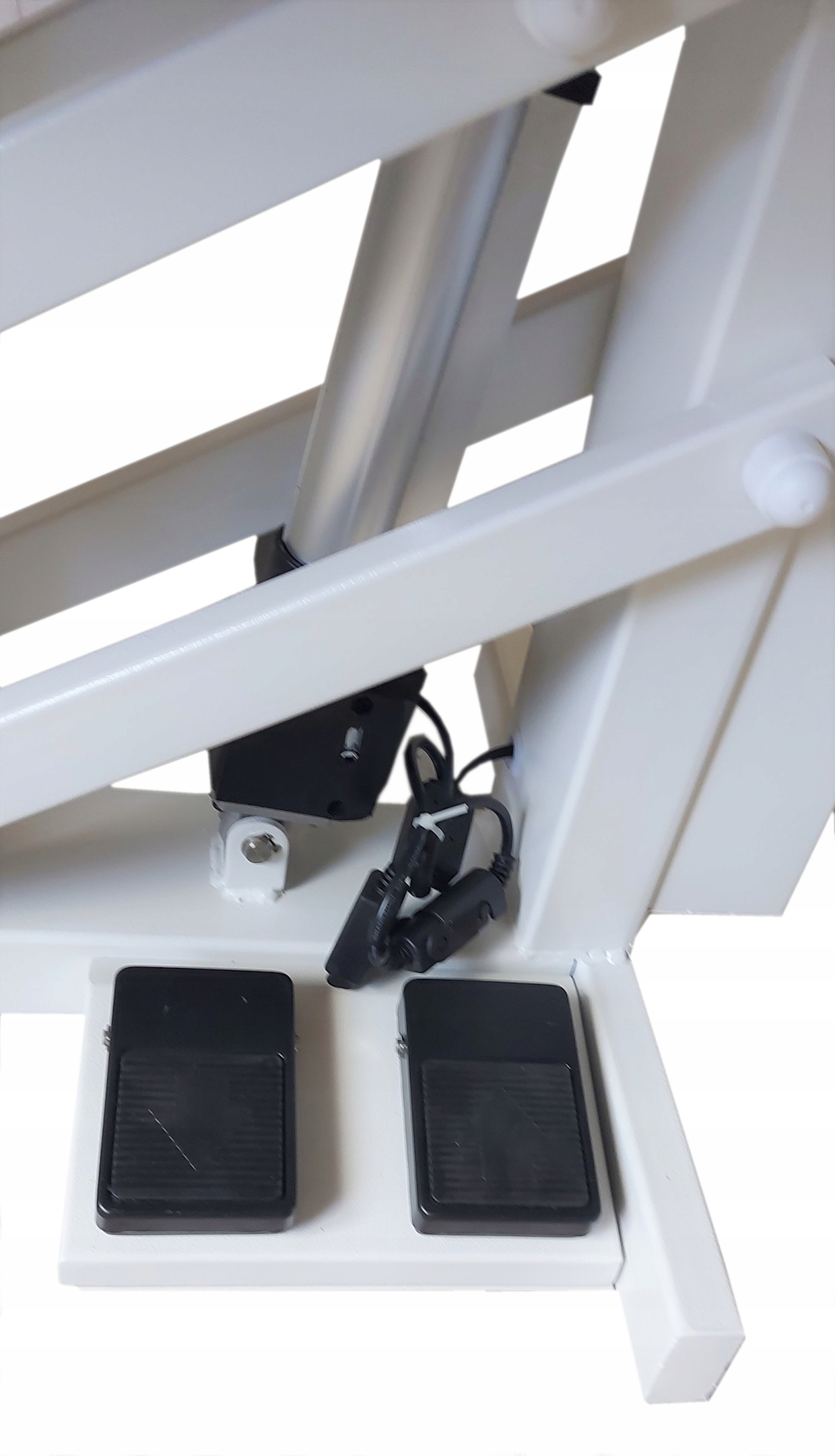 Стол имеет электрическое управление. Кнопки ВВЕРХ и ВНИЗ расположены в нижней части основания – удобное управление ножками.