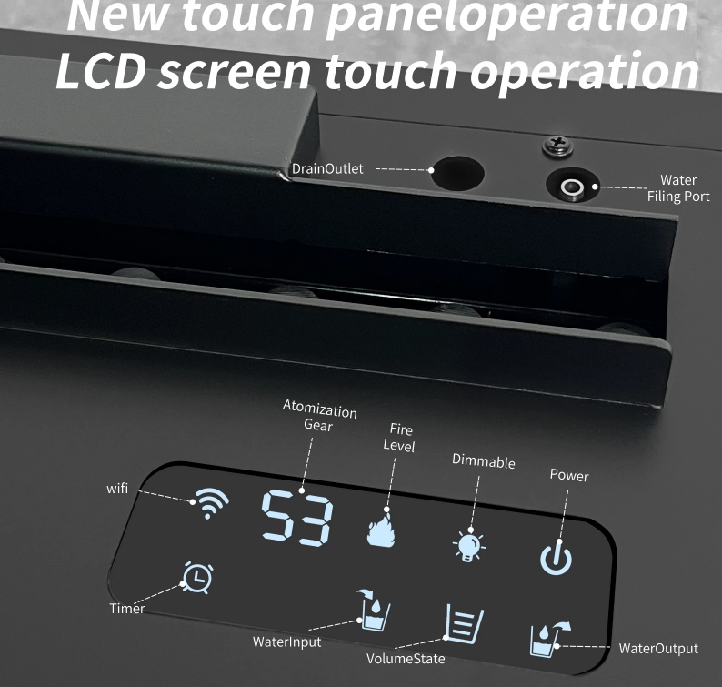 Камин для воды имеет функцию автоматического снабжения и дренажа воды. Когда вода будет заполнена, она автоматически перестанет заполняться водой и начнет работать, когда вода недостаточно, она автоматически перестанет работать. Рабочее время может быть установлено напрямую или с помощью мобильного приложения.