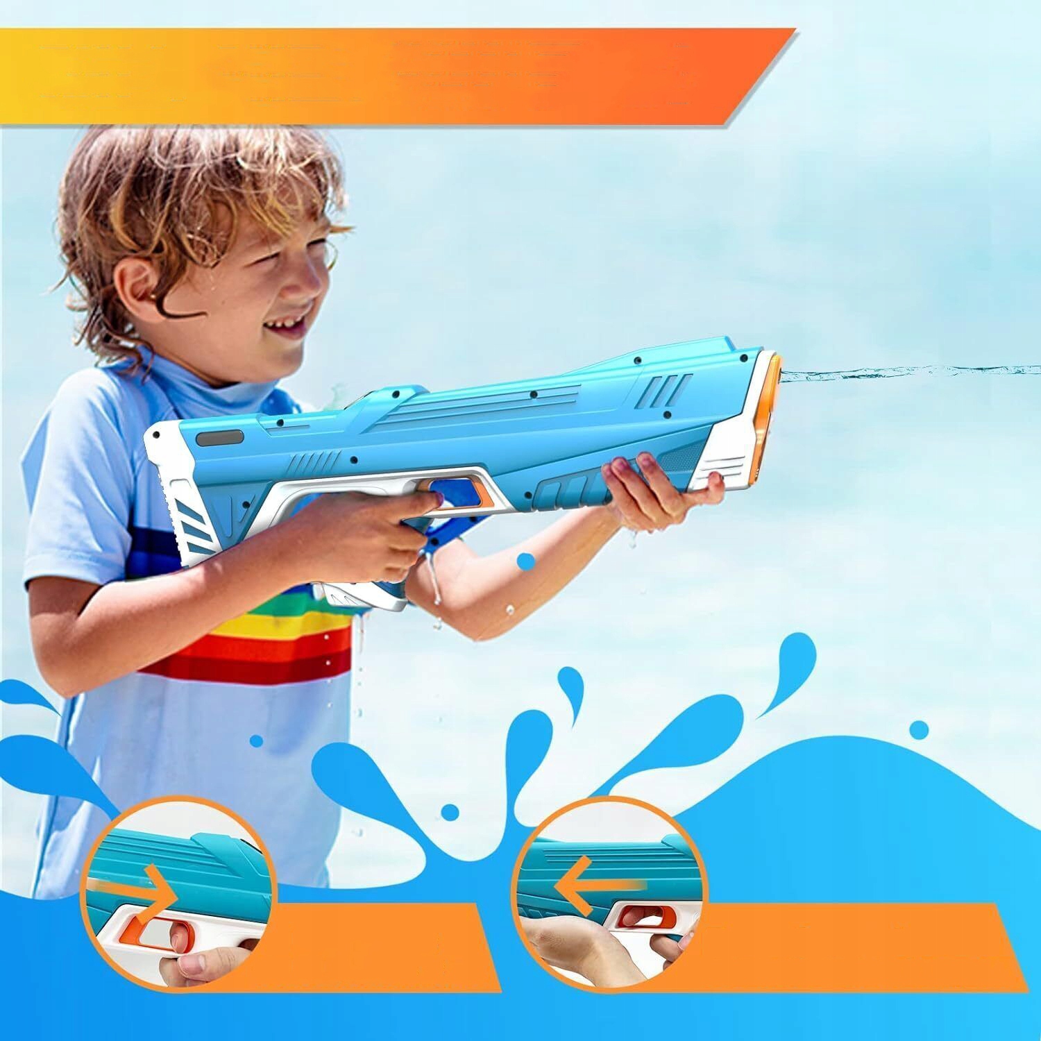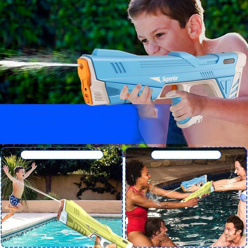 🔫🔫 Самый мощный электрический водяной пистолет: электрический водяной пистолет ликвидировал предыдущий режим, потяните триггер, чтобы автоматически стрелять с помощью питания аккумулятора. Легко использовать для взрослых и детей, больше нет проблем, связанных с ручным управлением давлением.