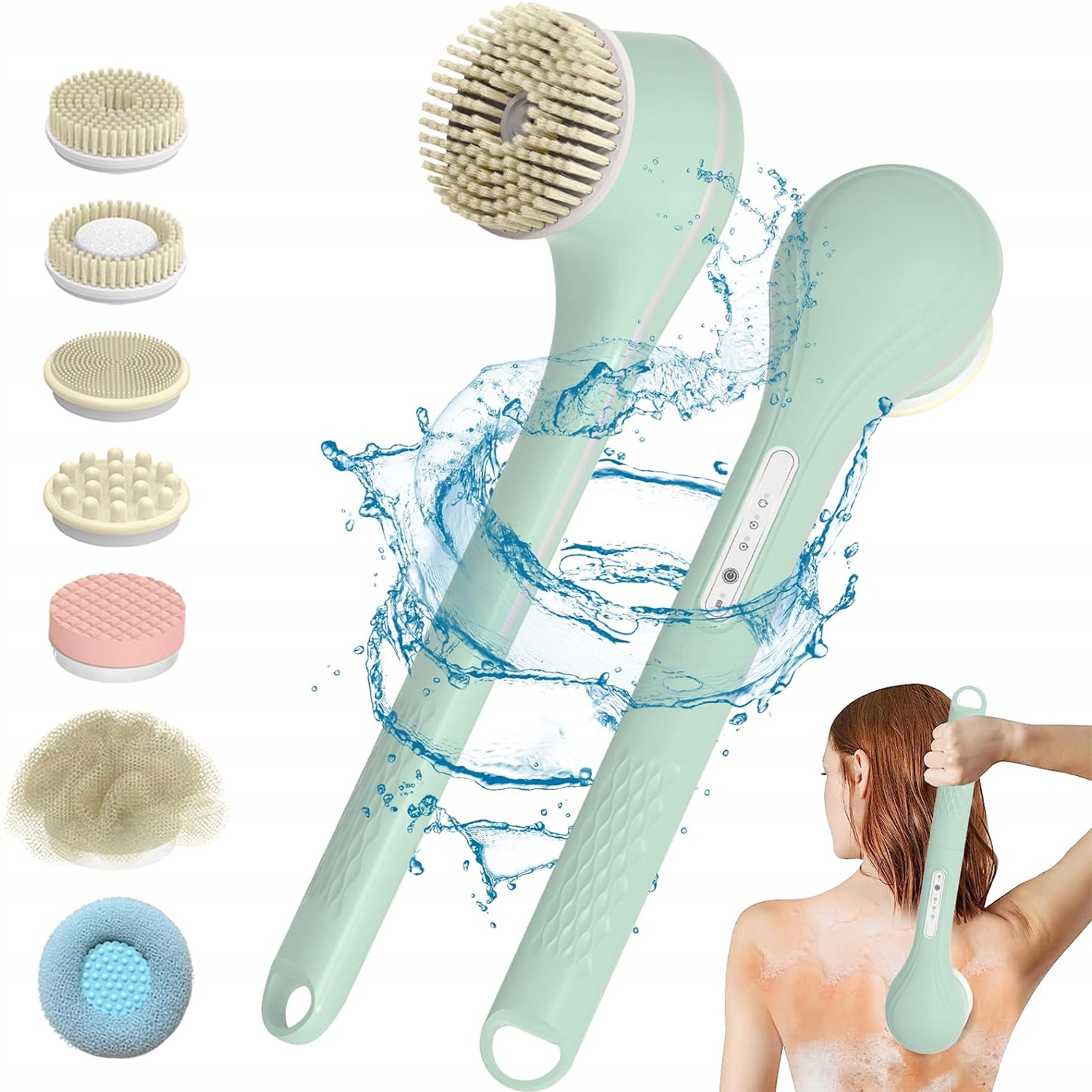 НАБОР ЭЛЕКТРИЧЕСКИХ И ВОДОНЕПРОНИЦАЕМЫХ ЩЕТОК ДЛЯ МЫТЬЯ ТЕЛА С РУЧКОЙ 7 В 1