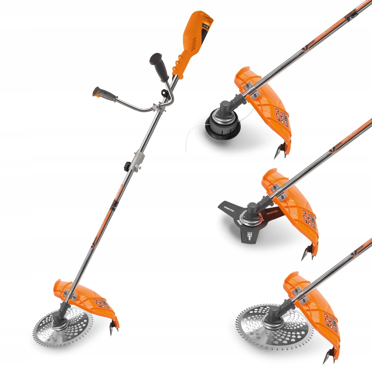 ✔ Полуавтоматическая триммерная головка + трехзубый нож + отрезной диск