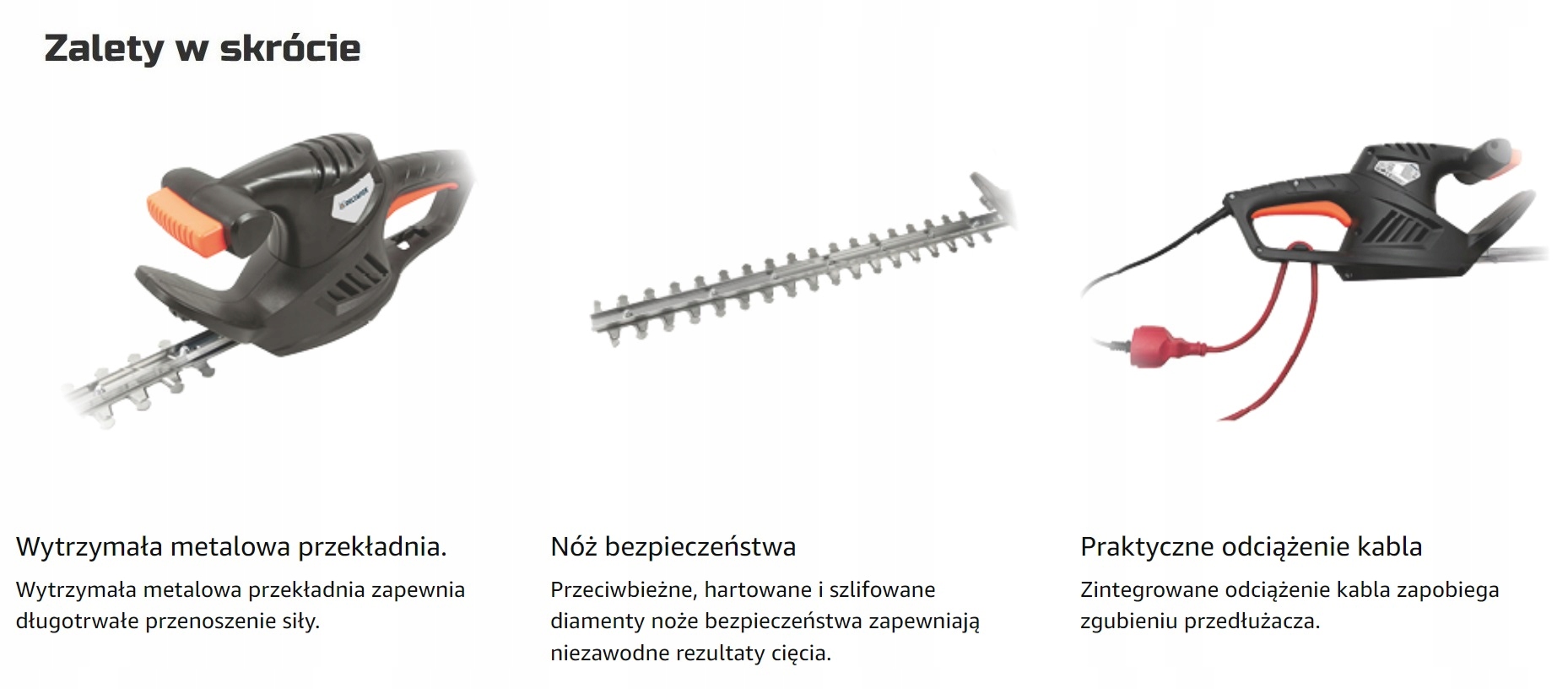 С помощью нашего электрического кустореза Deltafox DG-EHT 6051 с длиной стрижки 45 см вы сможете легко и непринужденно обрезать ветки диаметром до 16 мм. Преимущества этого триммера для живой изгороди говорят сами за себя. Электрические триммеры для живой изгороди работают без раздражающих выхлопных газов и полностью без выбросов. Обладая мощностью 600 Вт, этот триммер для живой изгороди обладает приличной напористостью. Режущее лезвие обеспечивает прямую, быструю и чистую резку. Благодаря очень небольшому весу (всего 2,35 кг) живая изгородь достаточно легкая даже для длительных периодов работы. Благодаря ручкам эргономичной формы электрический кусторез удобно лежит в руке, поэтому вы можете работать безопасно и без усталости.