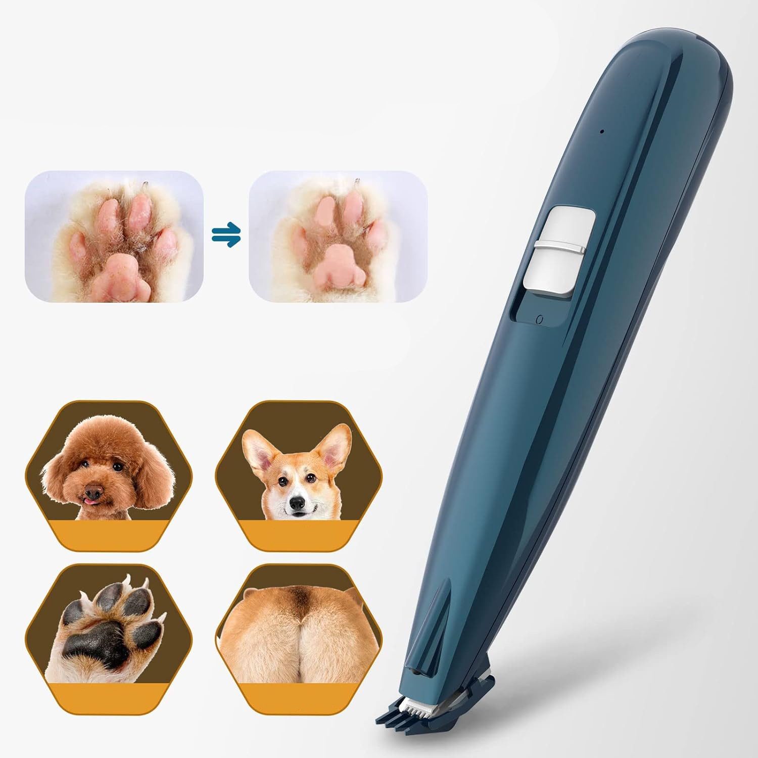 Безопасный размер позволяет даже брить волосы животного (зарезервированное расстояние 3 мм, съемное, когда это не нужно).