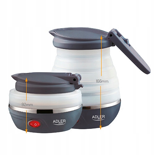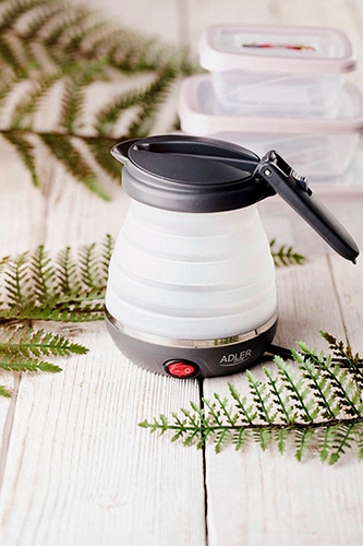 Преимуществом туристического чайника, помимо небольших размеров, является простота и безопасность использования. Его емкость составляет до 0,6 литра, что позволяет залить два стакана одним кипятком. Он оснащен автоматическим отключением после закипания воды и световым индикатором, поэтому его можно безопасно использовать в любых условиях. Часть корпуса выполнена из гибкого силикона, а подставка, ручка и крышка — из качественного матового термостойкого пластика черного цвета. Ручка оснащена кнопкой открытия крышки, защищающей от неконтролируемого проливания воды. Внутри корпуса, под крышкой, имеется отверстие, через которое пар после закипания воды поступает в биметаллический переключатель. Такая конструкция позволяет чайнику автоматически отключаться сразу после закипания воды. Кроме того, блокировка, предотвращающая включение пустого устройства, повышает безопасность использования и помогает экономить электроэнергию. Нам нужно позаботиться об удалении накипи, которая накапливается внутри чайника. Используйте специально разработанные препараты, и чайник прослужит вам долгие годы и сделает многие поездки в отпуск еще приятнее! AD 1279 оснащен складной ручкой, которая занимает еще меньше места, и тканевой сумкой для удобного хранения.