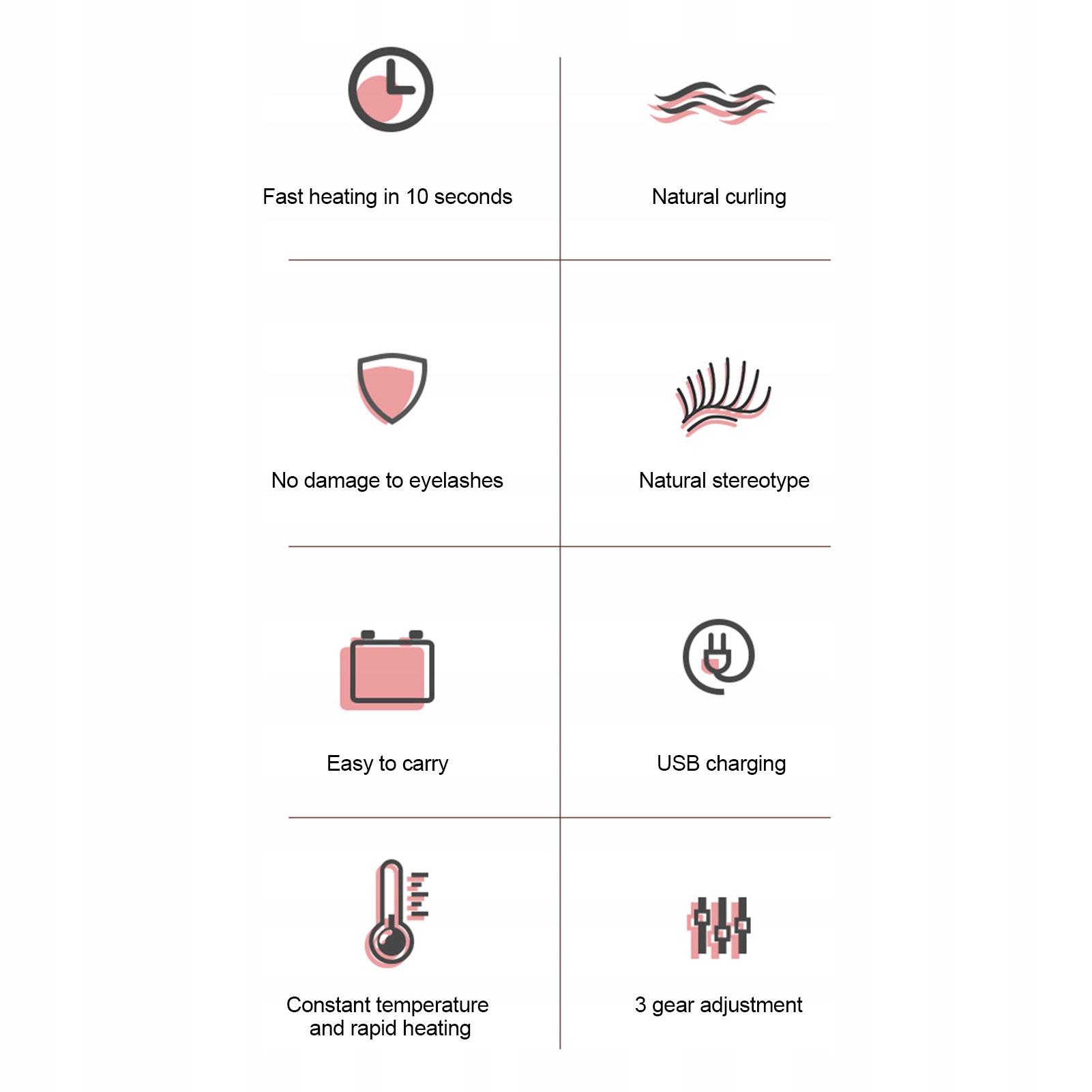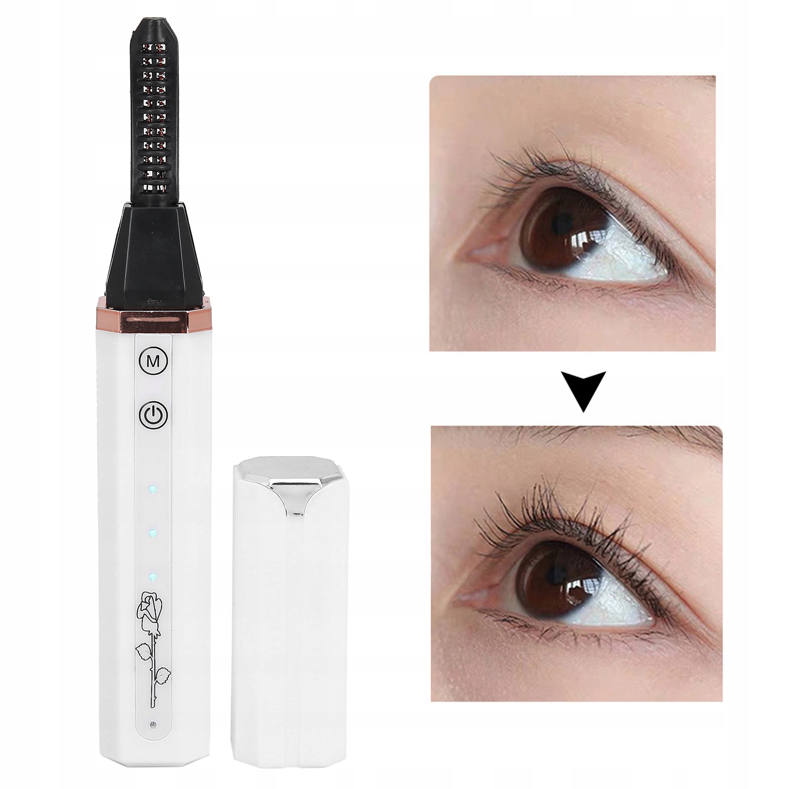 ✨szeroko rozstawione ząbki grzebienia mogą podgrzewć i modelować rzęsy po nałożeniu tuszzu do rzęs, rzęsy można podkręcać przez długi czas.