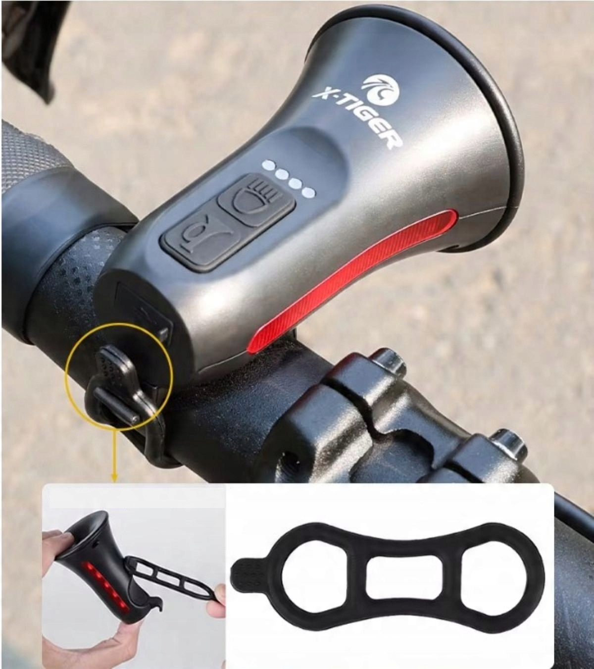 ЭЛЕКТРИЧЕСКИЙ ВЕЛОСИПЕДНЫЙ СИГНАЛ, ВОДОНЕПРОНИЦАЕМЫЙ IPX4 С ЗАРЯДКОЙ USB + ПОДСВЕТКА + ДОПОЛНИТЕЛЬНЫЙ СЪЕМНЫЙ ВЫКЛЮЧАТЕЛЬ - 120 ДБ - ЧЕРНЫЙ ЦВЕТ