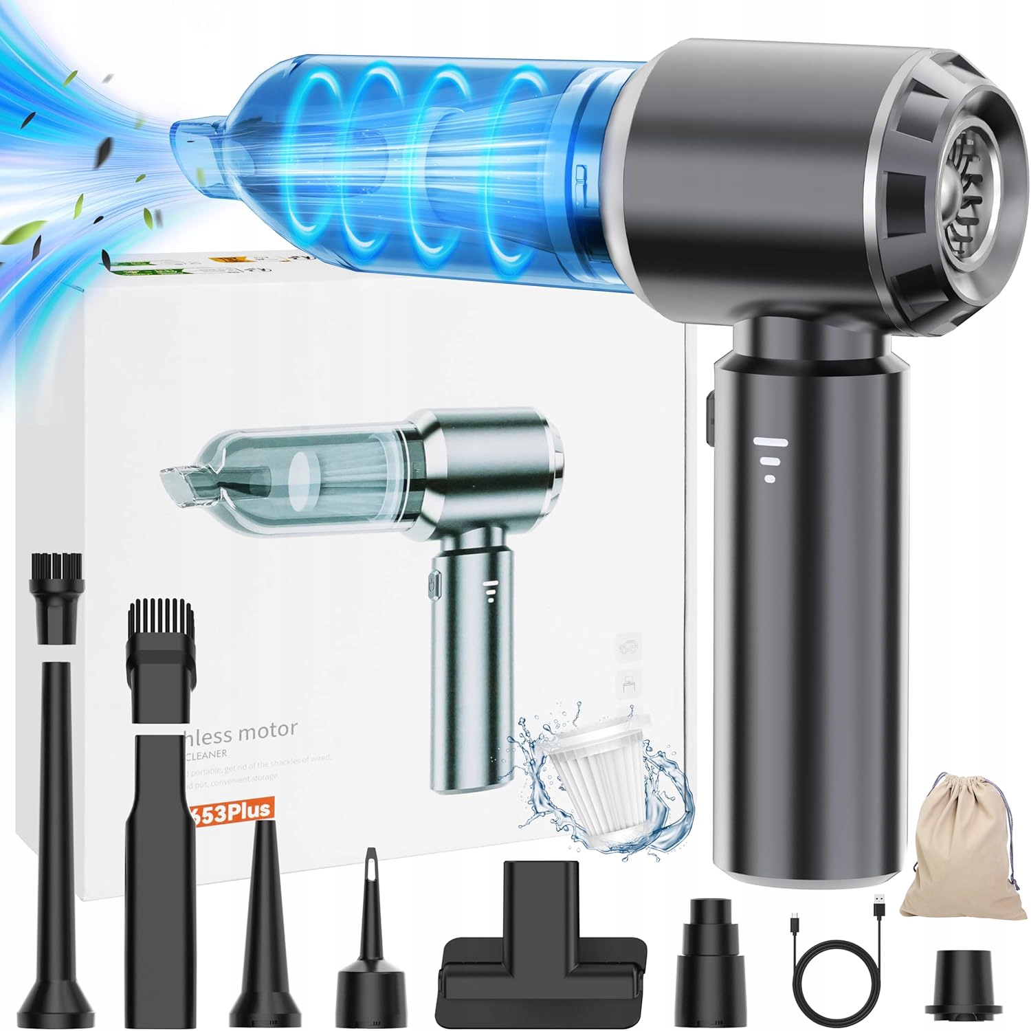- Беспроводной дизайн, запущенный с одной кнопкой, обеспечивает быструю и легкую очистку расщелищных дел дома, офиса или автомобиля