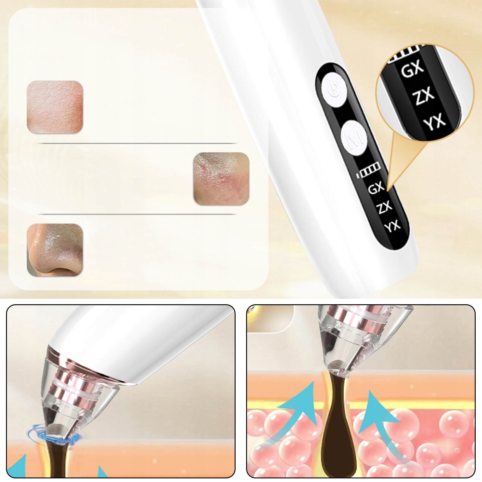 - ✅ Разработано для различных типов кожи, это устройство для удаления пор имеет 4 различных головка всасывания и 5 режимов регулировки, эффективно удаляя постоянные черные головы, поднимая и укрепляя кожу.