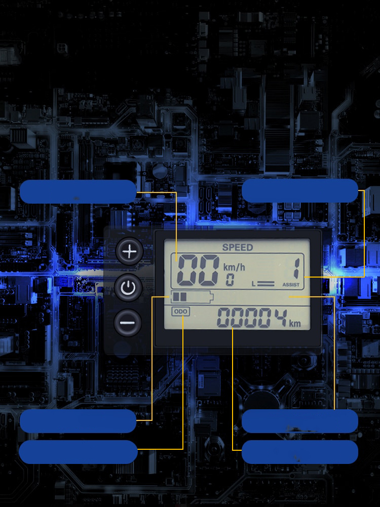 Многофункциональный ЖК-экран может отображать несколько данных одновременно, включая мониторинг заряда батареи, скорость, расстояние поездки и настройки передачи. Вы можете легко регулировать мощность аккумулятора и двигателя на ЖК-экране, крутя педали. USB-порт позволяет заряжать устройство в любое время.