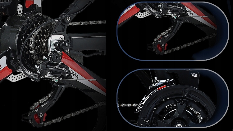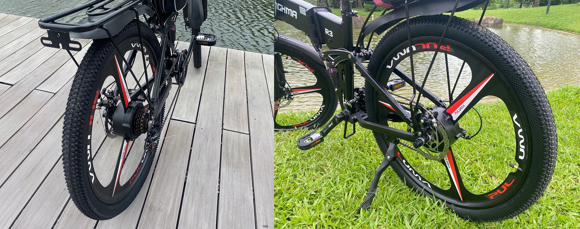 Двигатель Jinghma R3 с задним приводом обеспечивает превосходный крутящий момент и исключительные характеристики, необходимые для улучшения работы в сложных дорожных условиях. Он легко может развивать максимальную скорость 40 км/ч. Рычаг переключения передач Shimano, кривошип и задний переключатель представляют собой мягкую и гибкую 21-скоростную систему.
