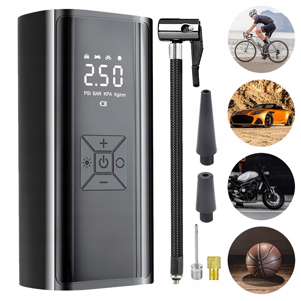 🔺a Электрические воздушные насосы 3 единицы напряжения (бар, бар, KPA), и есть четыре режима работы, поддержка накачки шариков, велосипедные шины, мотоциклетные шины и автомобильные шины. Воздух, но также и банк питания, может быть подключен к зарядному кабелю для зарядки мобильного телефона и ноутбука, а также с интерфейсом типа C и оборудованным автомобильным пусковым шнуром, который удобен и быстр для зарядки.