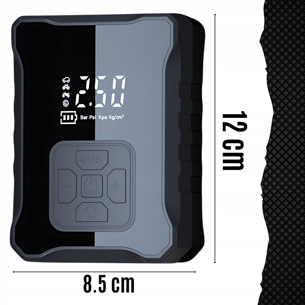 Большой дисплей - это не только современный дизайн, но и выше удобства использования. На дисплее мы увидим установленное измерительное блок, один из трех режимов работы (автомобиль, велосипед, мяч), состояние батареи, значение заданного давления. p>