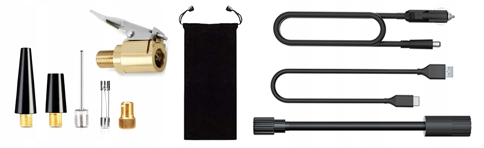 - Набор аксессуаров в комплекте, в том числе металлические наконечники + пружинный наконечник для автомобильного клапана - быстрый разъем