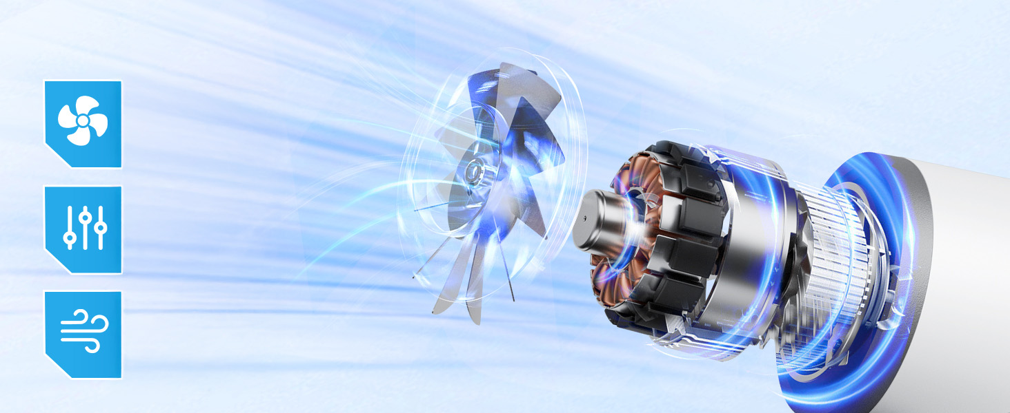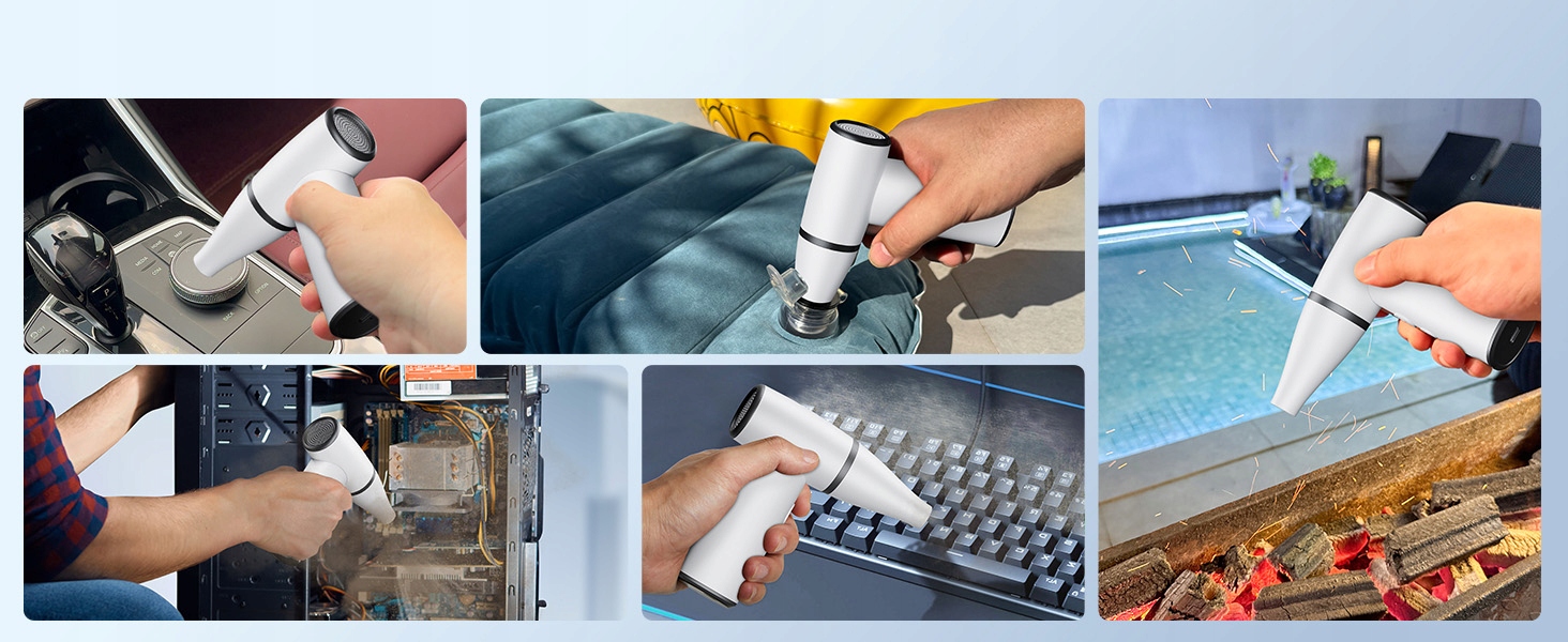 Благодаря 3-скоростным режимам, этот электрический воздушный пылесос гарантирует сильные воздушные потоки, напоминающие торнадо, что позволяет эффективно и глубоко убирать компьютерные клавиатуры, автомобили и воздушные фильтры. Это экономит энергию и время, обеспечивая при этом удаление пыли на 99%, что делает ее лучшей альтернативой для банок с сжатым воздухом и чистящими агентами для клавиатур.