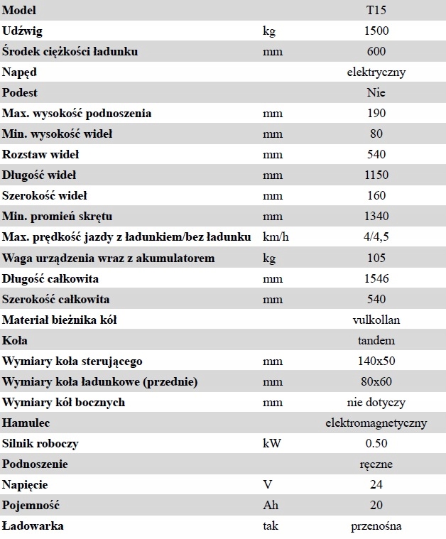 Просматривая «Электрическая тележка T15 1500 кг L = 1150 20AH», вы можете быть уверены, что данный товар из каталога «Вилочные погрузчики» будет доставлен из Польши и проверен на целостность. В цене товара, указанной на сайте, учтена доставка из Польши. Внимание!!! Товары для Евросоюза, согласно законодательству стран Евросоюза, могут отличаться упаковкой или наполнением.