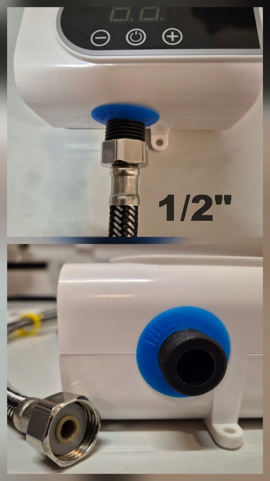 Подключение настолько простое, что можно подключить водонагреватель напрямую к душевому шлангу, если в доме нет воды - открываете кран как обычно, и вода нагревается, протекая через водонагреватель - без сложного монтажа.