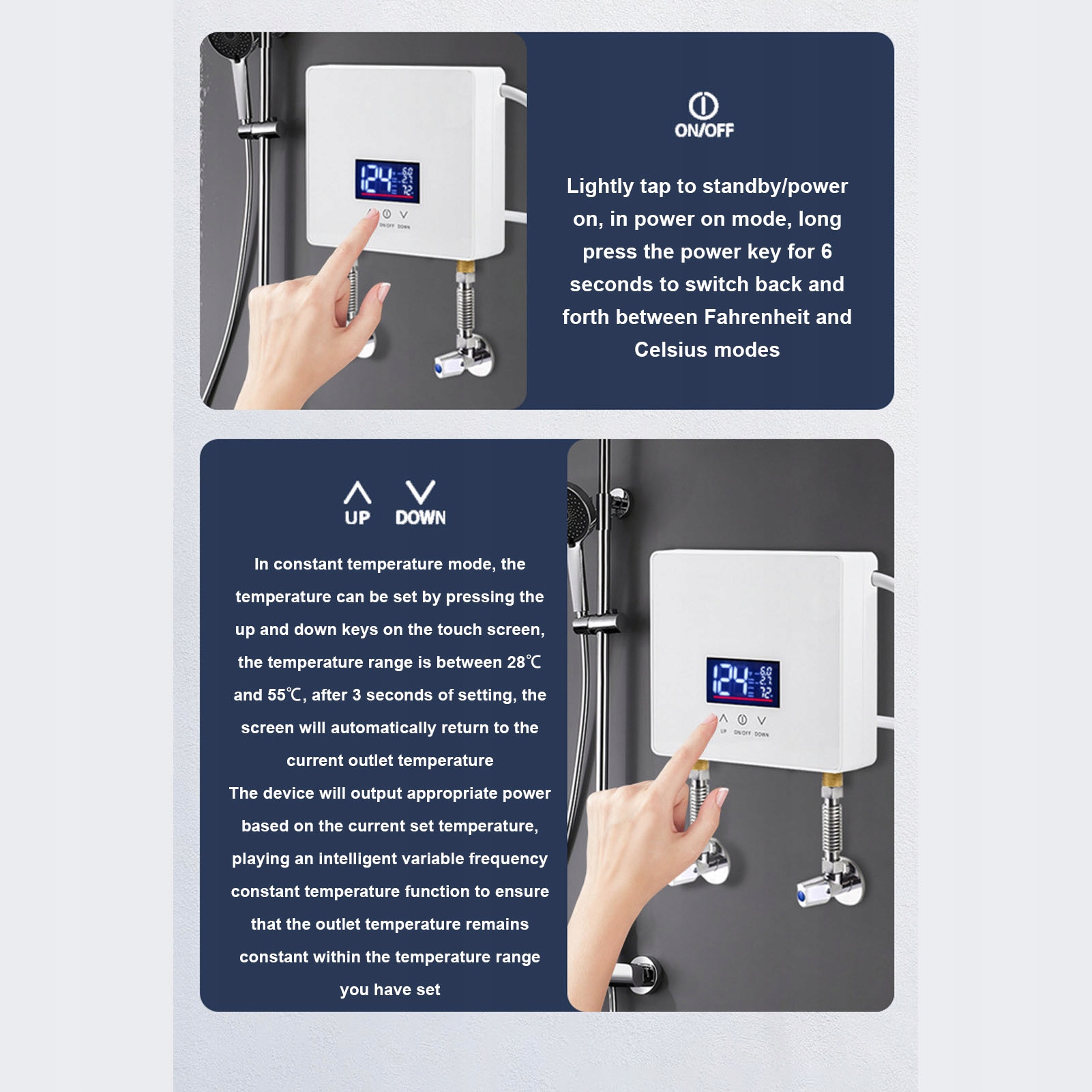 Электрический водонагреватель белый с сенсорным ЖК-экраном, фиксированный 5J