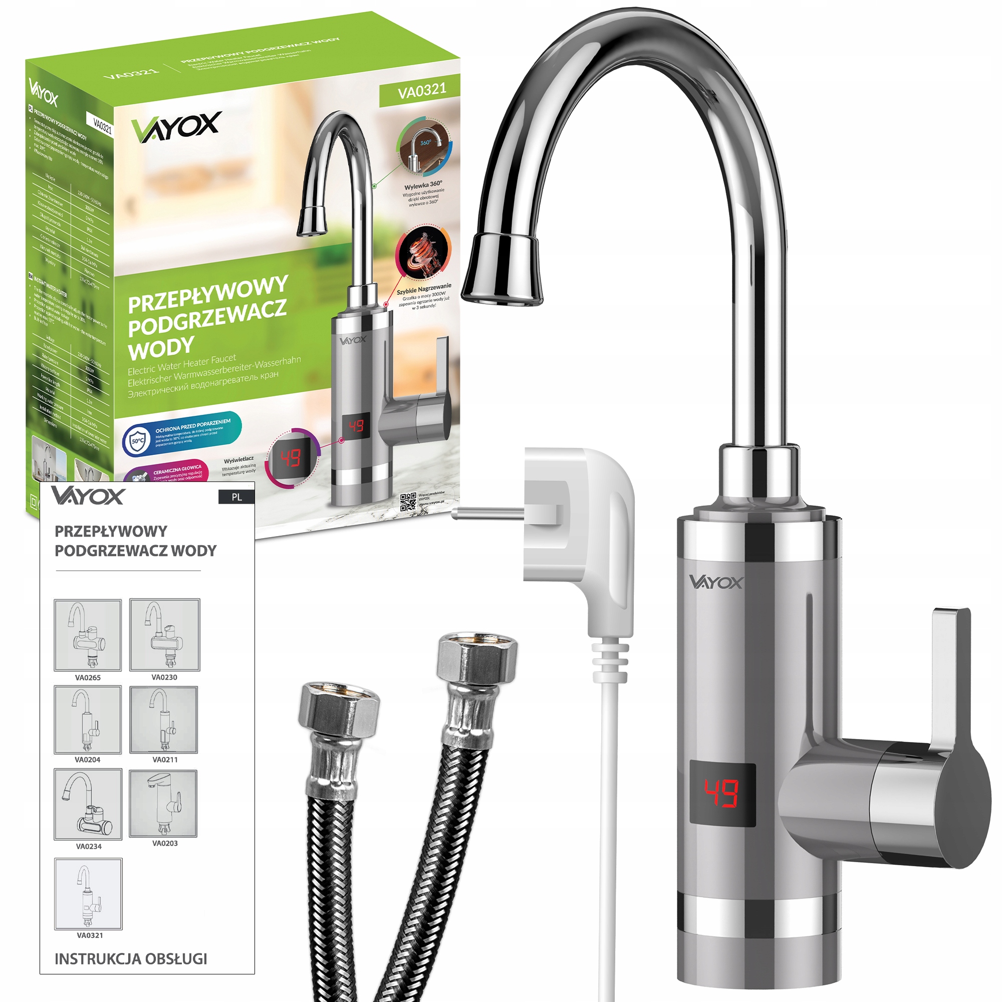 Электрический водонагреватель vayox va0321 -это простое устройство, которое быстро нагревает воду до 50 ° C . Он идеально подходит для использования на кухне, в ванной комнате, в гараже, на участке или в летнем доме, обеспечивая удобные условия для мытья рук и очистки различных предметов.